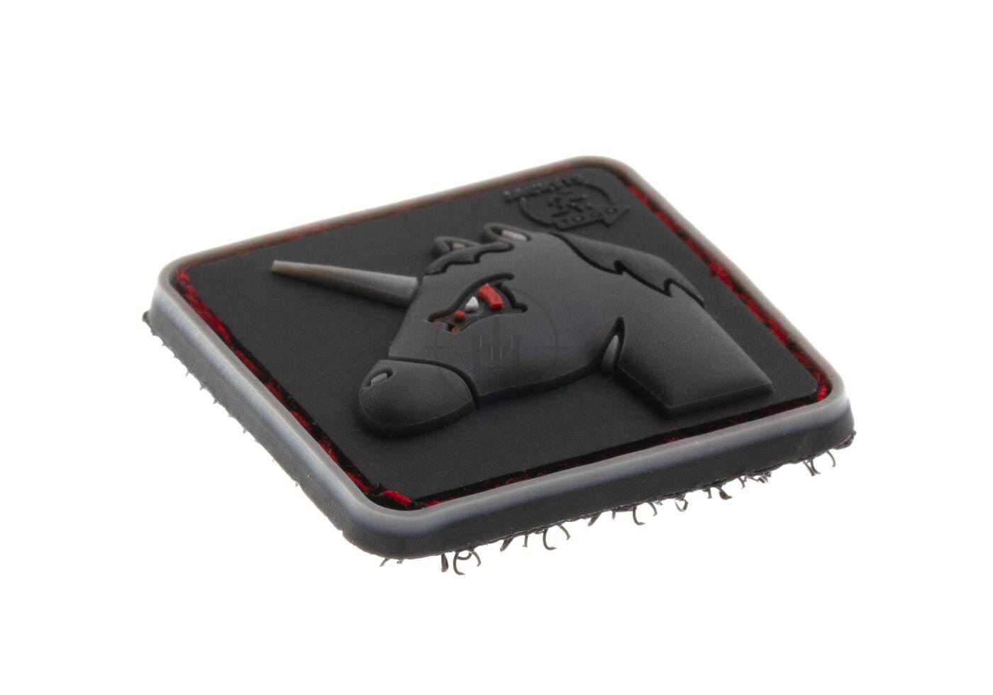 Naszywka gumowa na rzep Angry Unicorn. Wymiary: 3x3x0,6 cm