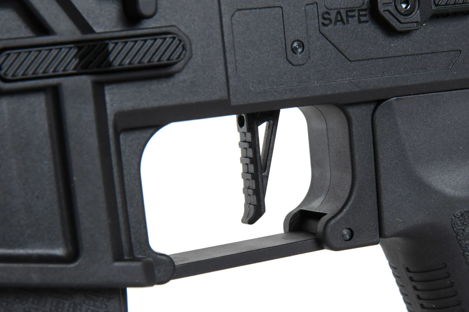 Korpus to autorski projekt Specna Arms łączący w sobie walory estetyczne oraz wysoką ergonomię. Każdy element został wykonany oraz spasowany z dbałością o szczegóły. Model posiada obustronne powiększone manipulatory (selektor oraz zwalniacz magazynka) oraz funkcjonalny bolt-catch.