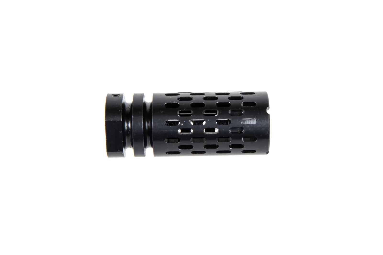 Wysokiej jakości replika urządzenia wylotowego wykonana z oksydowanej stali. W zestawie znajduje się podkładka/ dystanser.