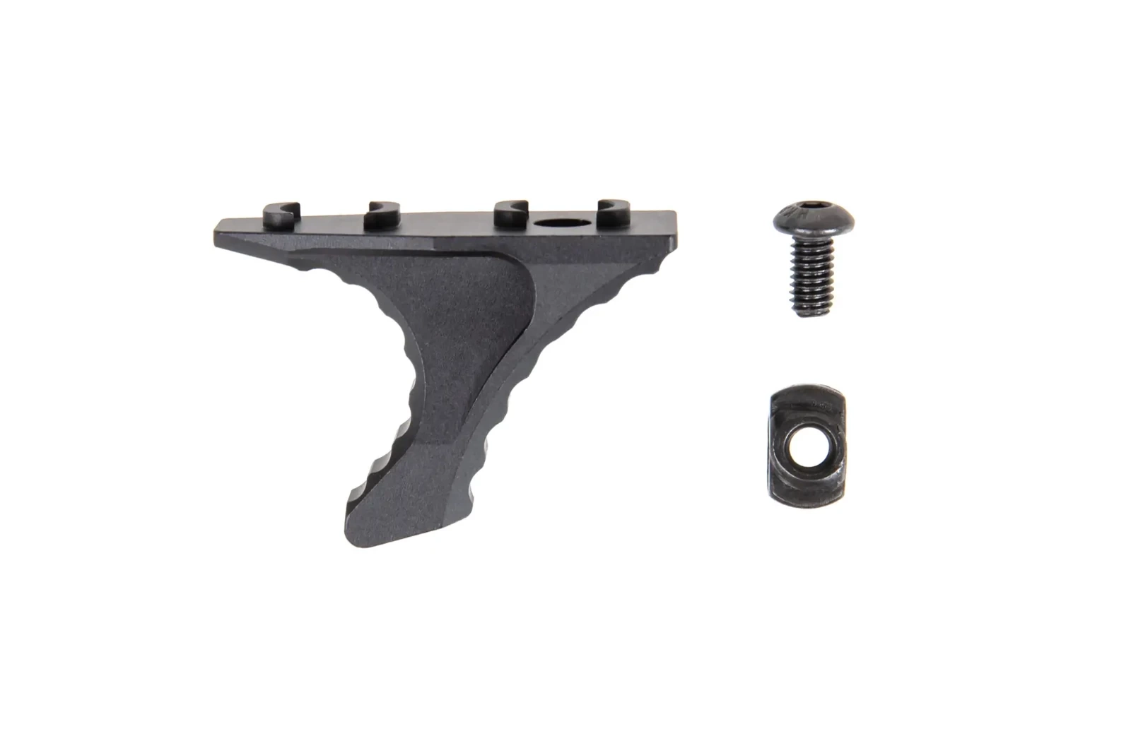 Niewielki, aluminiowy chwyt przedni przeznaczony dla systemu mlok. Pełni funkcję podpórki dla dłoni - aby nie ześlizgnęła się z chwytu przedniego broni.