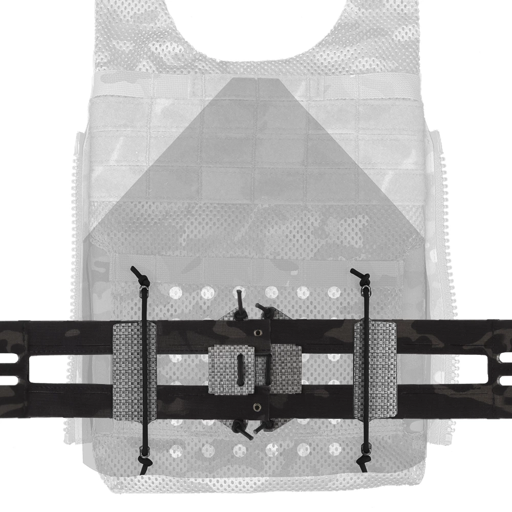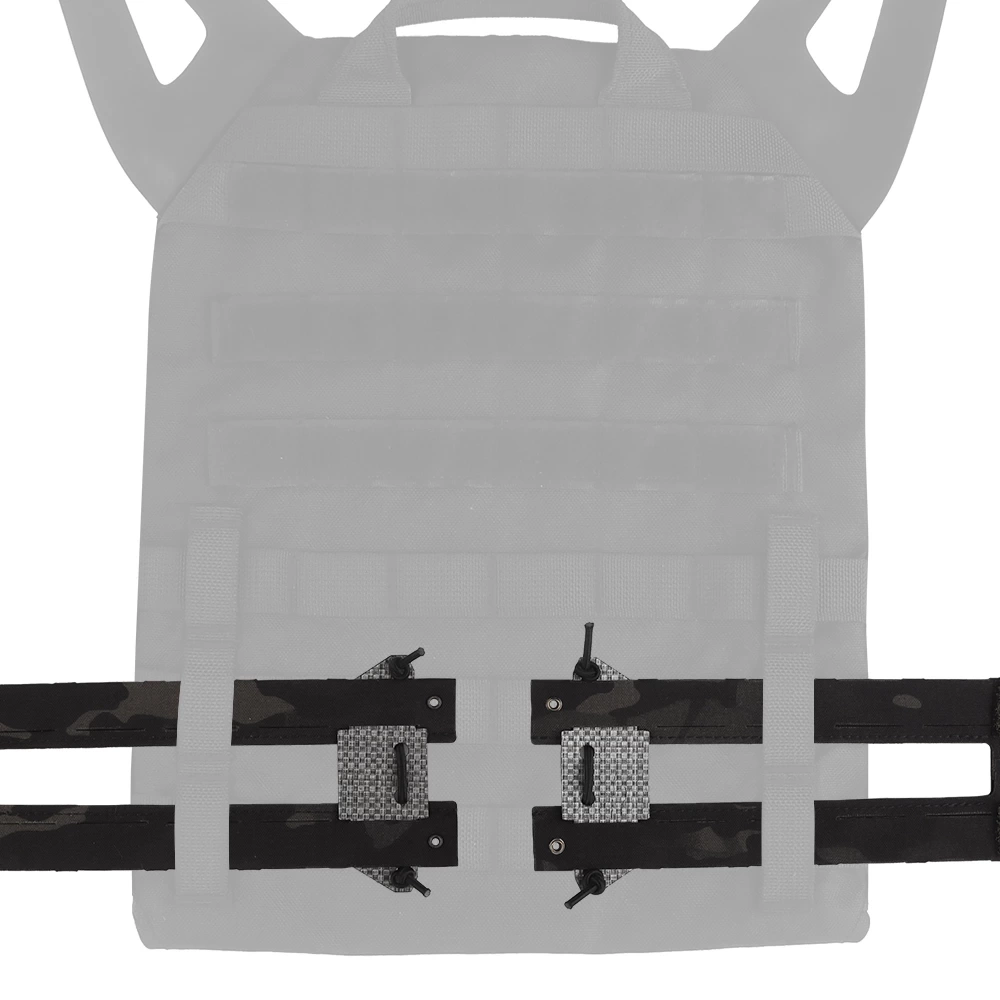 Dołączone do zestawu adaptery z tworzywa termoplastycznego oraz shockcordy pozwalają na montaż cummerbundów na kapizelkach typu V5, JPC, AVS oraz podobnych.
