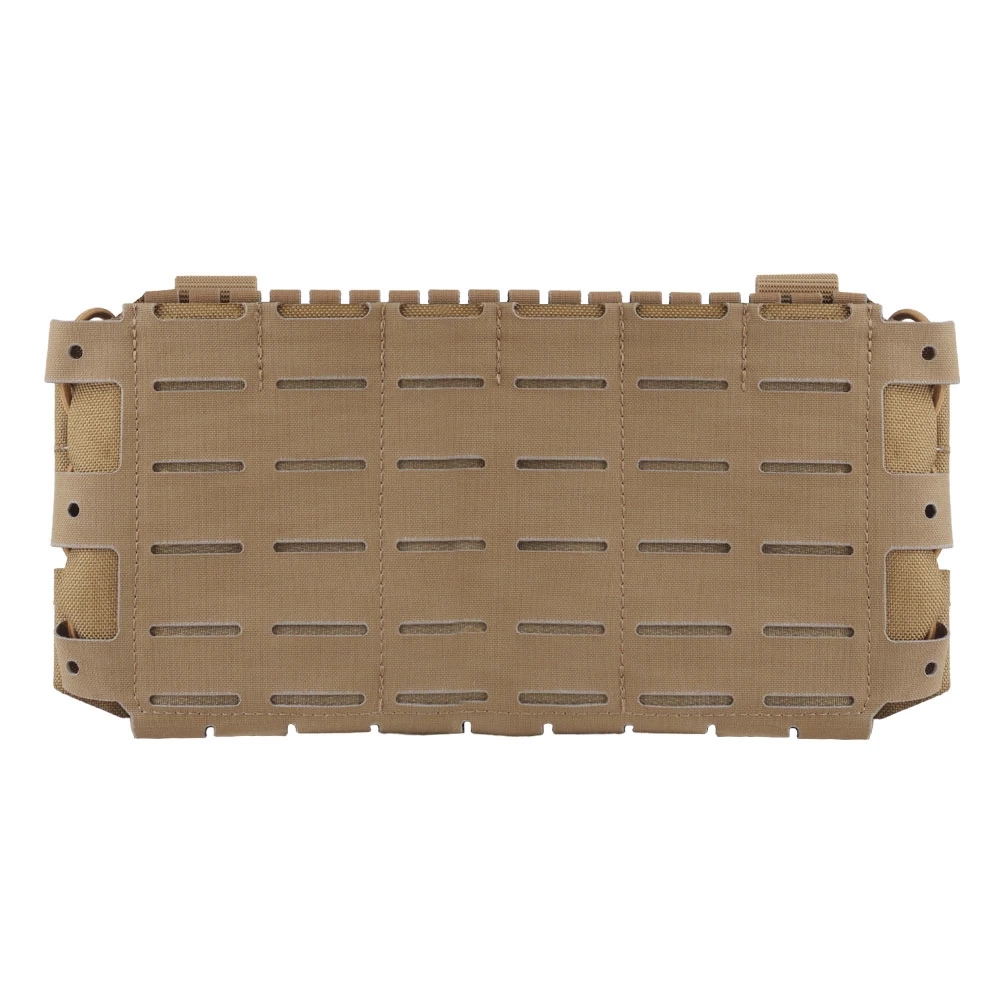 Lekka i wytrzymała konstrukcja doskonale sprawdzi się z kamizelkami taktycznymi w systemie Buckle ; Mocowany przy użyciu rzepów i klamer, panel posiada wycinane otwory Molle Laser Cut, które umożliwią rozbudowanie naszego wyposażenia o dodatkowe ładownice czy kieszenie.