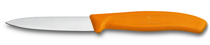 Nóż do warzyw i owoców z prostą krawędzią ostrza, wyprodukowany w Szwajcarii.