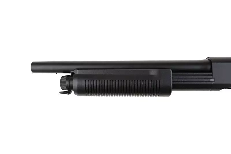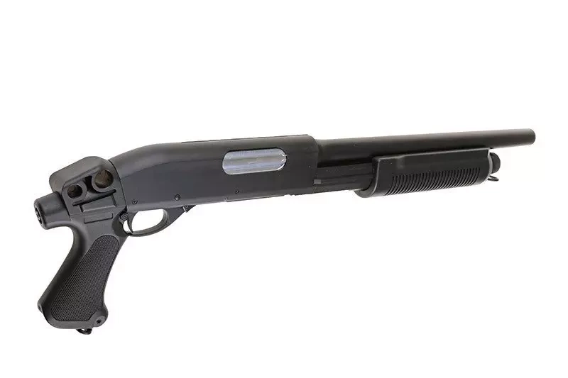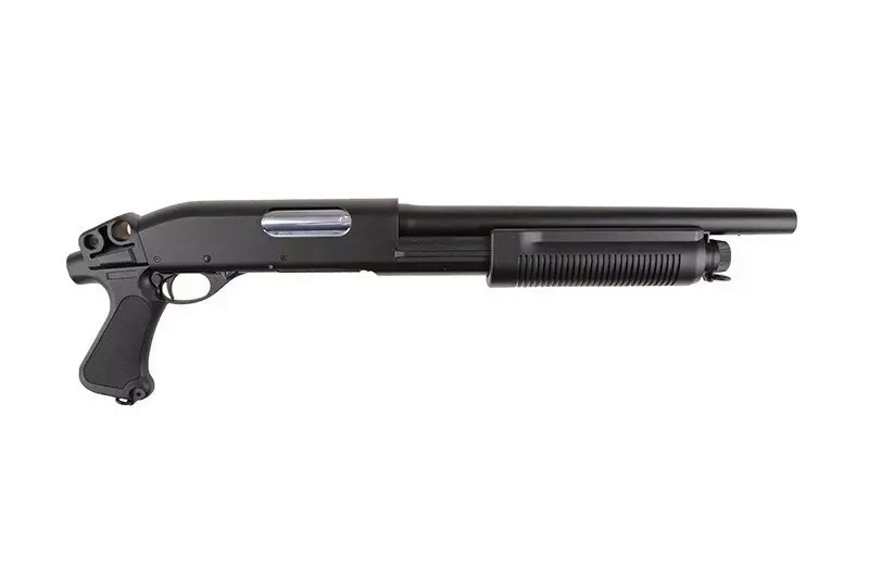 Rodzinę strzelb Cymy charakteryzują dokładnie te same cechy, co inne produkty tej znanej marki. To przede wszystkim solidna jakość wykonania i dobre osiągi w połączeniu z atrakcyjną ceną. CM351 to replika strzelby o napędzie spreżynowym, co najważniejsze - posiadająca aż 3 lufy wewnętrzne! Pozwala to na wystrzelenie 3 kulek jednocześnie za jednym pociągnięciem spustu, a dzięki temu uzyskanie zdecydowane przewagi na polu walki. Szczególnie podczas airsoftowych potyczek o charakterze CQB (choć nie tylko!). 6mm amunicję ładuje się do dołączonej atrapy shellsa o pojemności 30 kulek, którego następnie umieszczamy w komorze nabojowej, co nadaje użytkowaniu repliki dodatkowego powiewu realizmu.