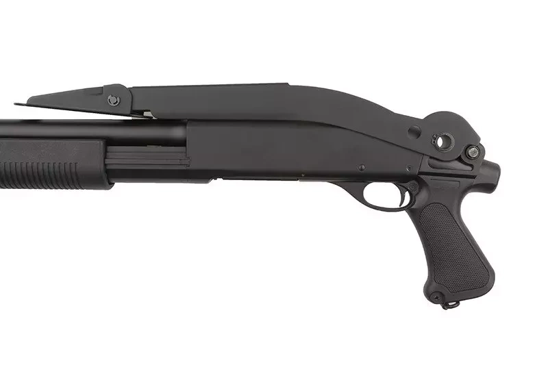 Przełącznik bezpiecznika oraz przycisk blokady klapki komory nabojowej znajdują się zaraz obok języka spustowego, przez co ich obsługa jest szybka i intuicyjna. Model CM352 posiada składaną, stalową kolbę składaną na grzbiet korpusu. Pozwala ona na szybkie zmniejszenie gabarytów repliki np. do transportu, czy sprawnego operowania w ciasnych pomieszczeniach.