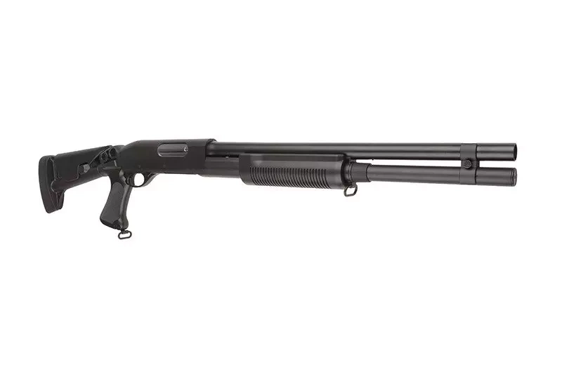 Rodzinę strzelb Cymy charakteryzują dokładnie te same cechy, co inne produkty tej znanej marki. To przede wszystkim solidna jakość wykonania i dobre osiągi w połączeniu z atrakcyjną ceną. CM352 to replika strzelby o napędzie spreżynowym, co najważniejsze - posiadająca aż 3 lufy wewnętrzne! Pozwala to na wystrzelenie 3 kulek jednocześnie za jednym pociągnięciem spustu, a dzięki temu uzyskanie zdecydowane przewagi na polu walki. Szczególnie podczas airsoftowych potyczek o charakterze CQB (choć nie tylko!). 6mm amunicję ładuje się do dołączonej atrapy shellsa o pojemności 30 kulek, którego następnie umieszczamy w komorze nabojowej, co nadaje użytkowaniu repliki dodatkowego powiewu realizmu.