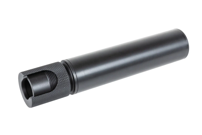Tłumik wykonany z aluminium PA6 na tokarkach CNC. Wewnątrz znajduje się pięć komór tłumiących składających się z krążków wykonanych z tworzywa oraz stalowych sprężyn. Tłumik jest całkowicie rozbieralny. Co pozwala na montaż jednostki naświetlającej lub zmianę wytłumienia.