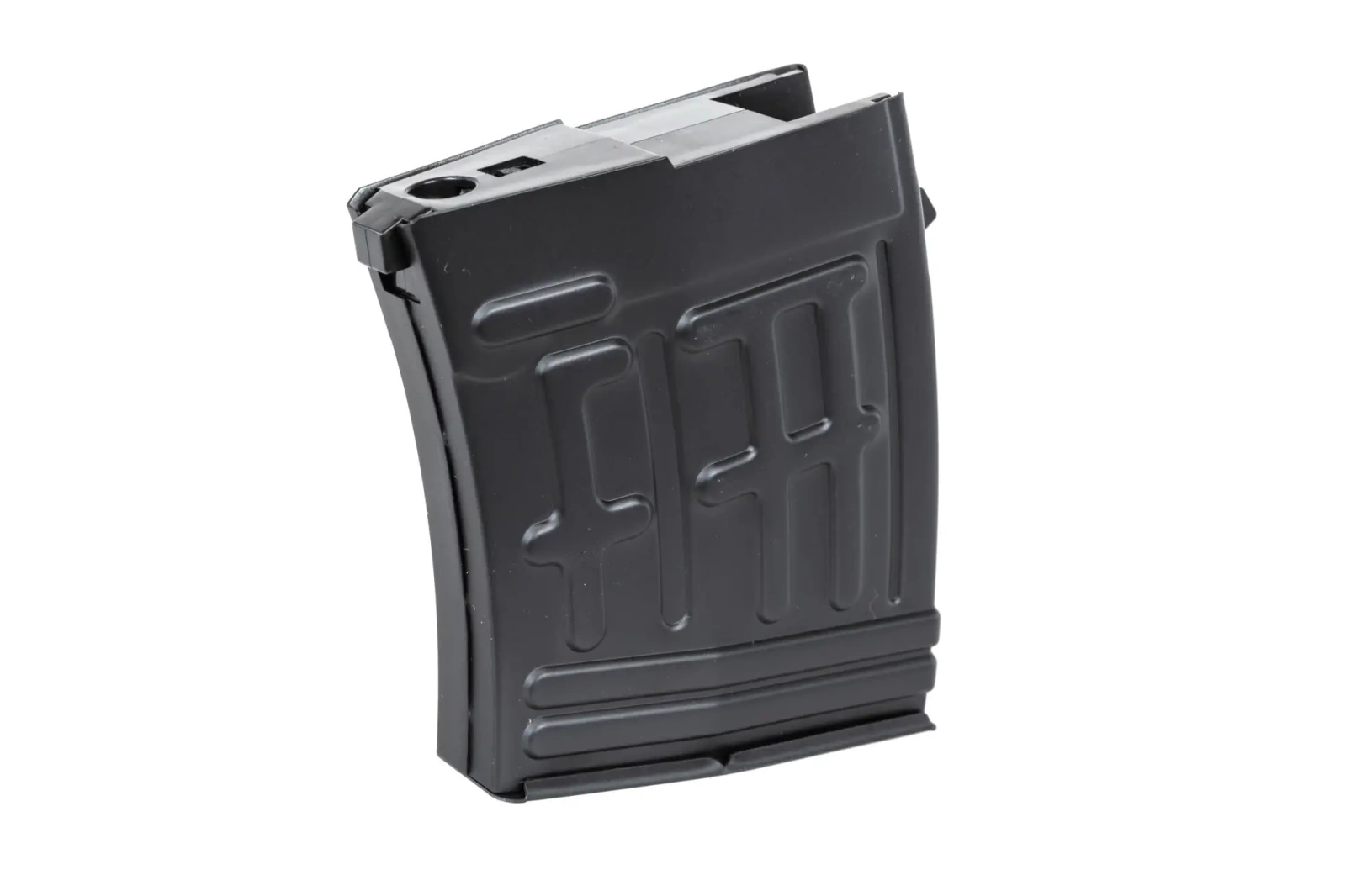 Wykonany ze stali, magazynek airsoftowy mid-cap do replik typu SVD (Standard King Arms). Magazynek pomieści 50 kulek.