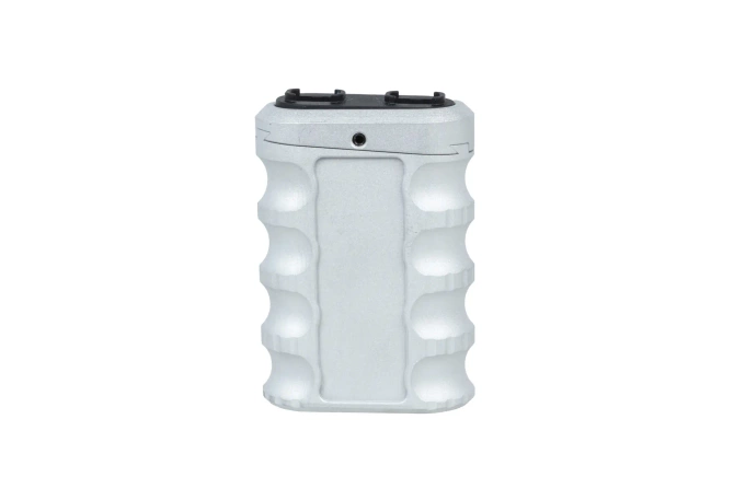 Kątowy chwyt przedni wykonany przy wykorzystaniu aluminium CNC. Chwyt posiada żłobienia, które umożliwią jeszcze lepszą kontrolę nad karabinkiem czy pistoletem maszynowym. W zestawie dołączono mocowania zarówno na szyny M-LOK jak i na ;