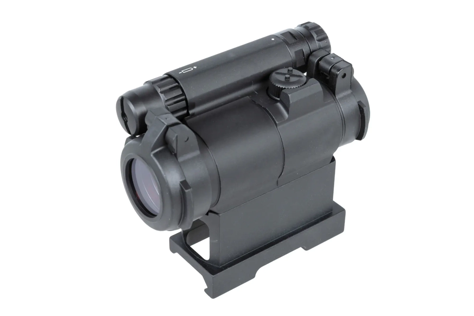 Kolimator wykonany z metalu, w zestawie dołączono montaż QD, który umożliwi mocowanie na replice bez konieczności posiadania dodatkowych narzędzi. Kolimator posiada dwie osłony typu flip-up dla ochrony szkieł.
