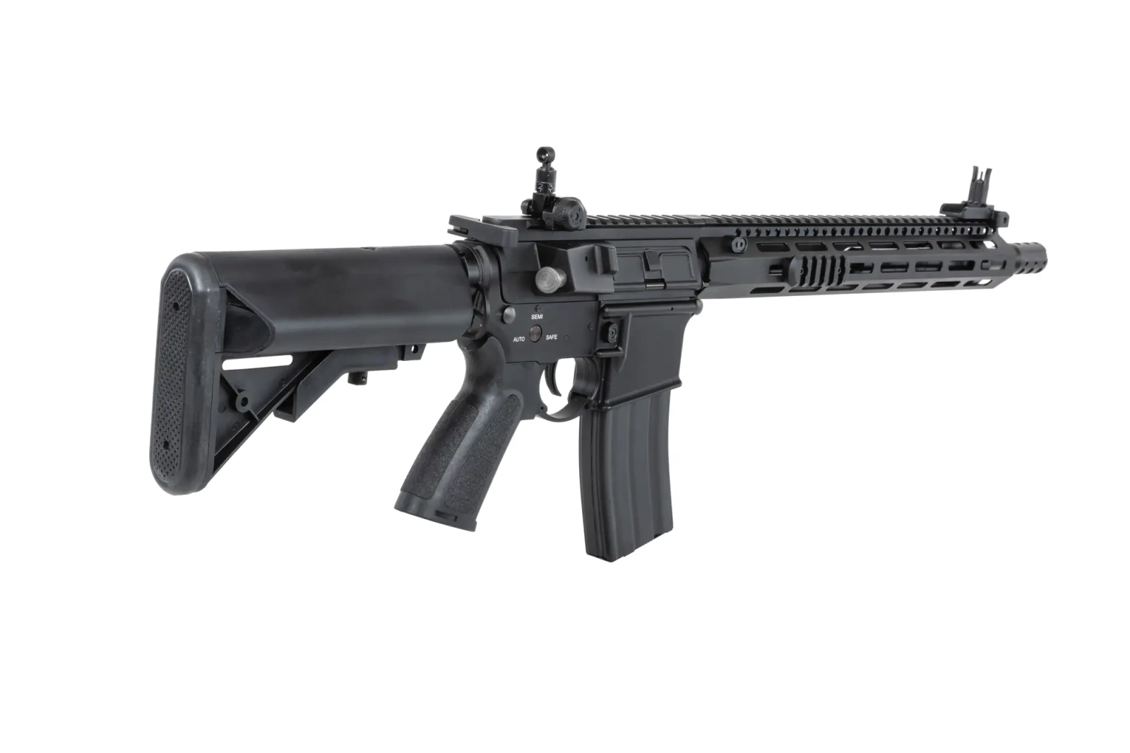 Replika popularnego karabinka M4 produkcji Double Bell. Model charakteryzuje się dobrymi osiągami prosto z pudełka, spasowaniem elementów oraz wysoką jakością zastosowanych materiałów. Replikę w większości wyprodukowano z ; Ze stopu aluminium wykonano między innymi korpus, lufę, tłumik płomienia, front ris i ;Z tworzywa polimerowego wykonane zostały jedynie chwyt pistoletowy oraz kolba.