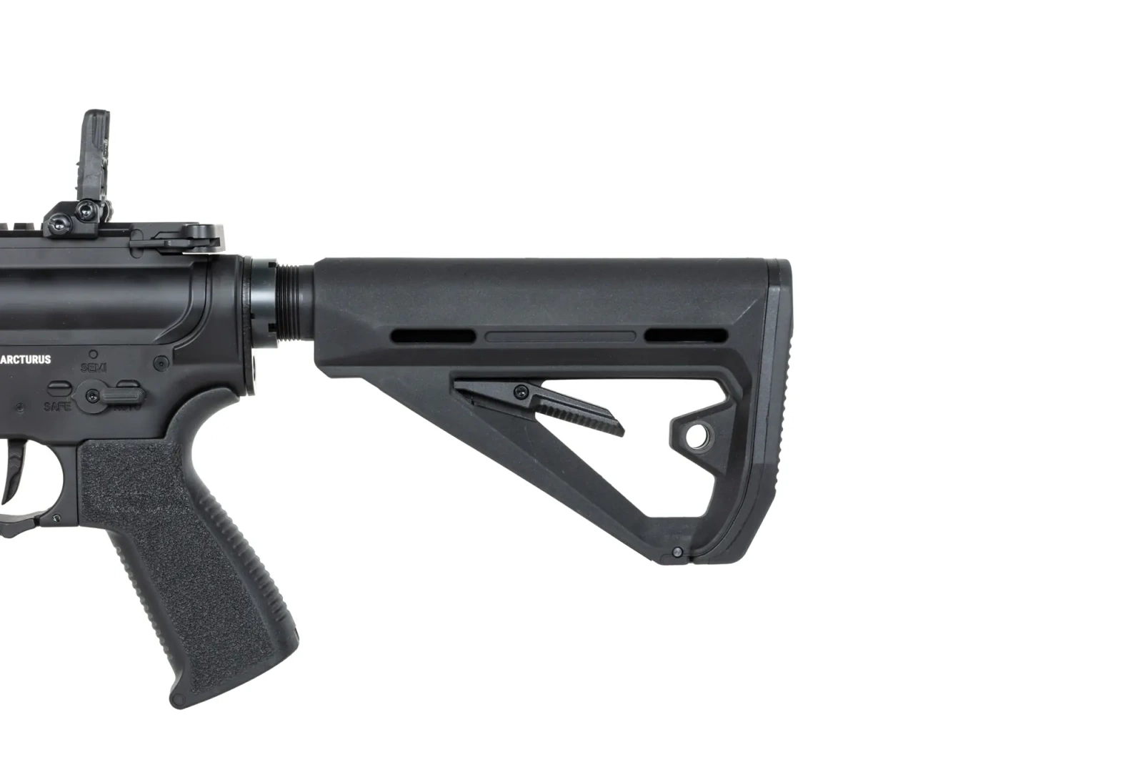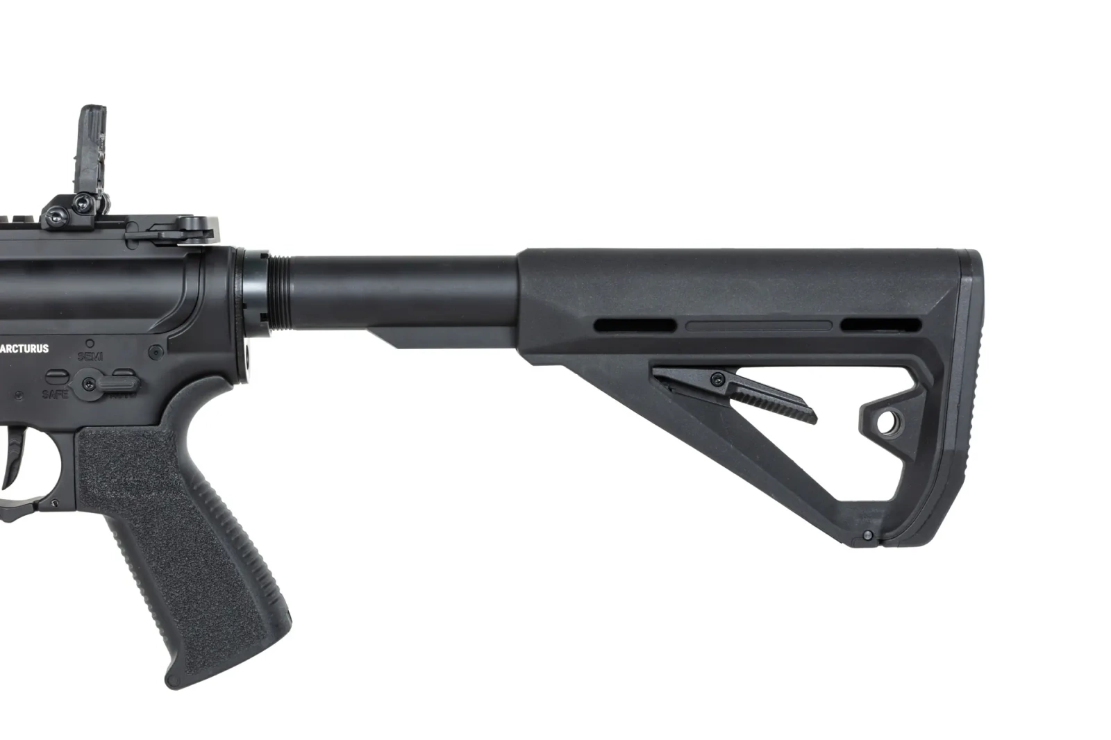 Ze stali wykonano: manipulatory (Bolt-catch, selektor ognia, zatrzask magazynka), atrapę dosyłacza, pierścień prowadnicy kolby, atrapę suwadła, mocowania QD na kolbie, niektóre piny oraz śruby. Z aluminium wykonano: korpus repliki z grzbietową szyną Picatinny, łoże o długości cala - łoże jest kompatybilne z systemem M-LOK. Na łożu znajdziemy dodatkowo szyny Picatinny. Język spustowy, urządzenie wylotowe, rączkę przeładowania, prowadnicę kolby, Z tworzywa wykonano magazynki o regulowanej pojemności, chwyt pistoletowy Arcturus AR MOD2 WKS typu Stippled Style oraz kolbę Arcturus AR MOD1 WKS ;