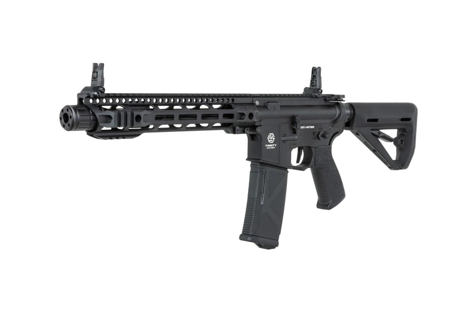 Prezentowany karabinek ASG jest wynikiem współpracy dwóch marek: Gate oraz Arcturus. Seria replik Trinity Armament jest pierwszą, która posiada fabrycznie zamontowane ETU TITAN II Bluetooth® wraz z czujnikami magazynka oraz bolt-catch. Trinity Armament pozwala na zwiększenie wrażeń użytkowych poprzez regulację pojemności magazynka lub blokadę strzału, gdy magazynek nie znajduje się w gnieździe. Oprócz tego, wewnątrz repliki znajdziemy najwyższej jakości części wewnętrzne wykonane w technologii CNC: