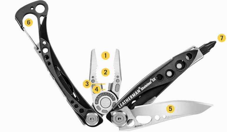 Leatherman Skeletool CX zawiera najważniejsze narzędzia w lekkiej i poręcznej konstrukcji. Ostrze ze stali nierdzewnej klasy premium 154CM charakteryzuje się doskonałą wytrzymałością i odpornością na korozję. Lecz oczywiście to coś więcej niż tylko nóż. Kombinerki, uchwyt do bitów i przecinaki do drutu przydadzą się częściej, niż możesz się spodziewać. Krótko mówiąc, Skeletool CX zawiera wszystko, czego potrzebujesz, bez zbędnych części.
