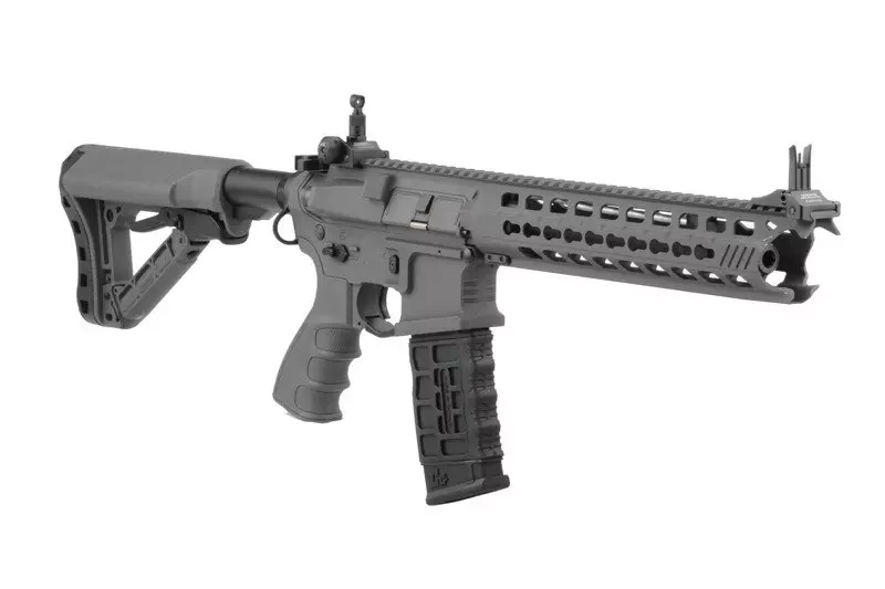 Replika idealnie nadaje się do prowadzenia działań na średnim dystansie, ze względu na prędkość wylotową rzędu ~344 FPS. Zastosowana grzbietowa szyna RIS pozwala na przyłączenie dowolnego celowniczego urządzenia optycznego, zaś wielopozycyjna, mieszcząca akumulator kolba umożliwia przystosowanie repliki do indywidualnych preferencji użytkownika. W zestawie otrzymujemy komplet składanych, mechanicznych przyrządów celowniczych typu flip-up.
