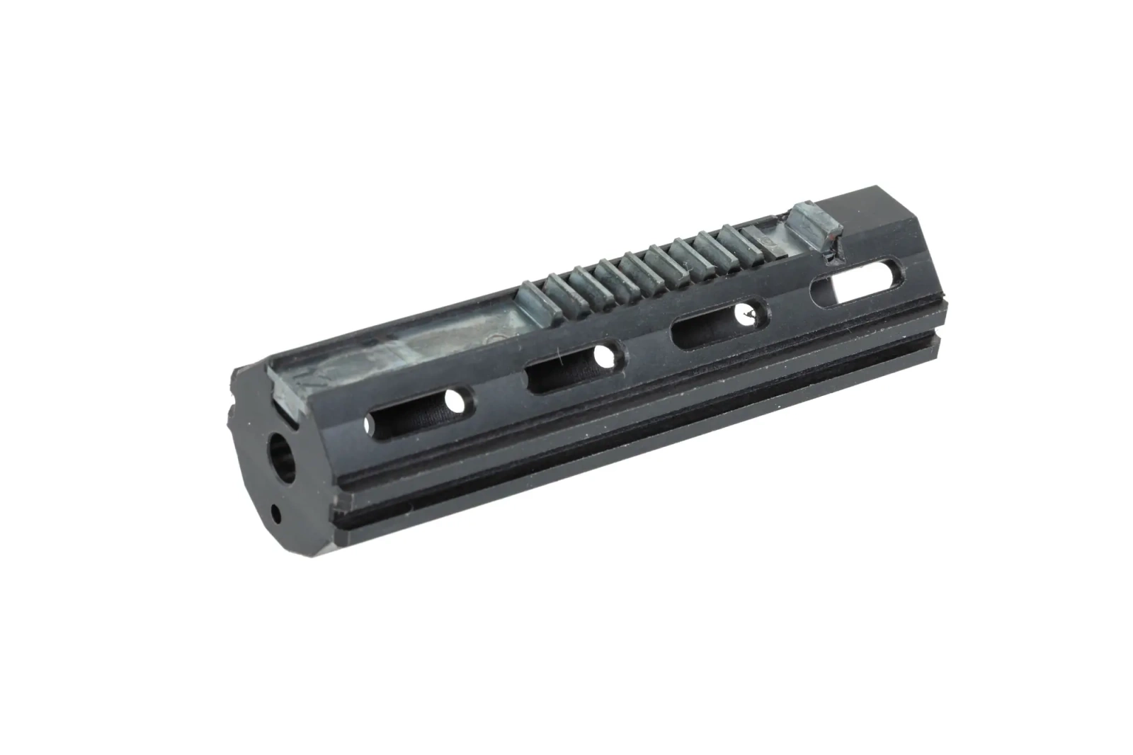Tłok wykonany z nylonu, który dodatkowo został wzmocniony włóknem szklanym (30%). Zaprojektowany został z myślą o Short Stroke - posiada stalową szczękę - 12 zębów, z czego drugi jest ścięty całkowicie a trzeci szczątkowy - ma to na celu poprawienie AoE. Model jest kompatybilny ze standardowymi gearboxami, posiada otwory, które zmniejszają jego wagę. Tył tłoka został wzmocniony, co pozwoli na współpracę z mocniejszymi spręż ;