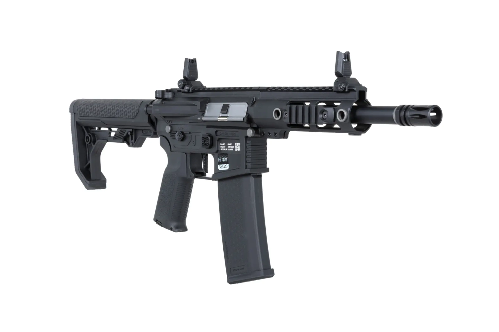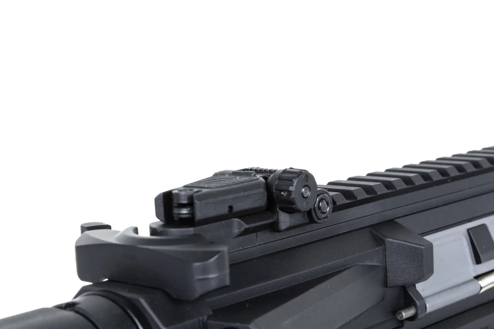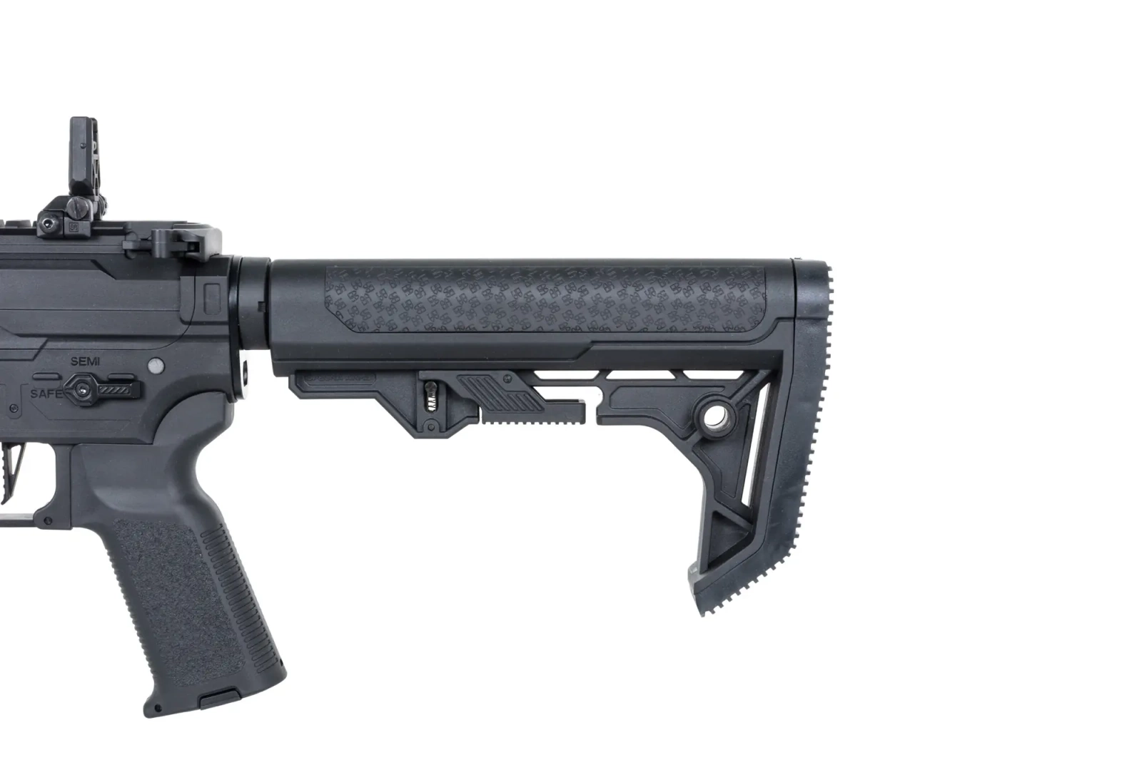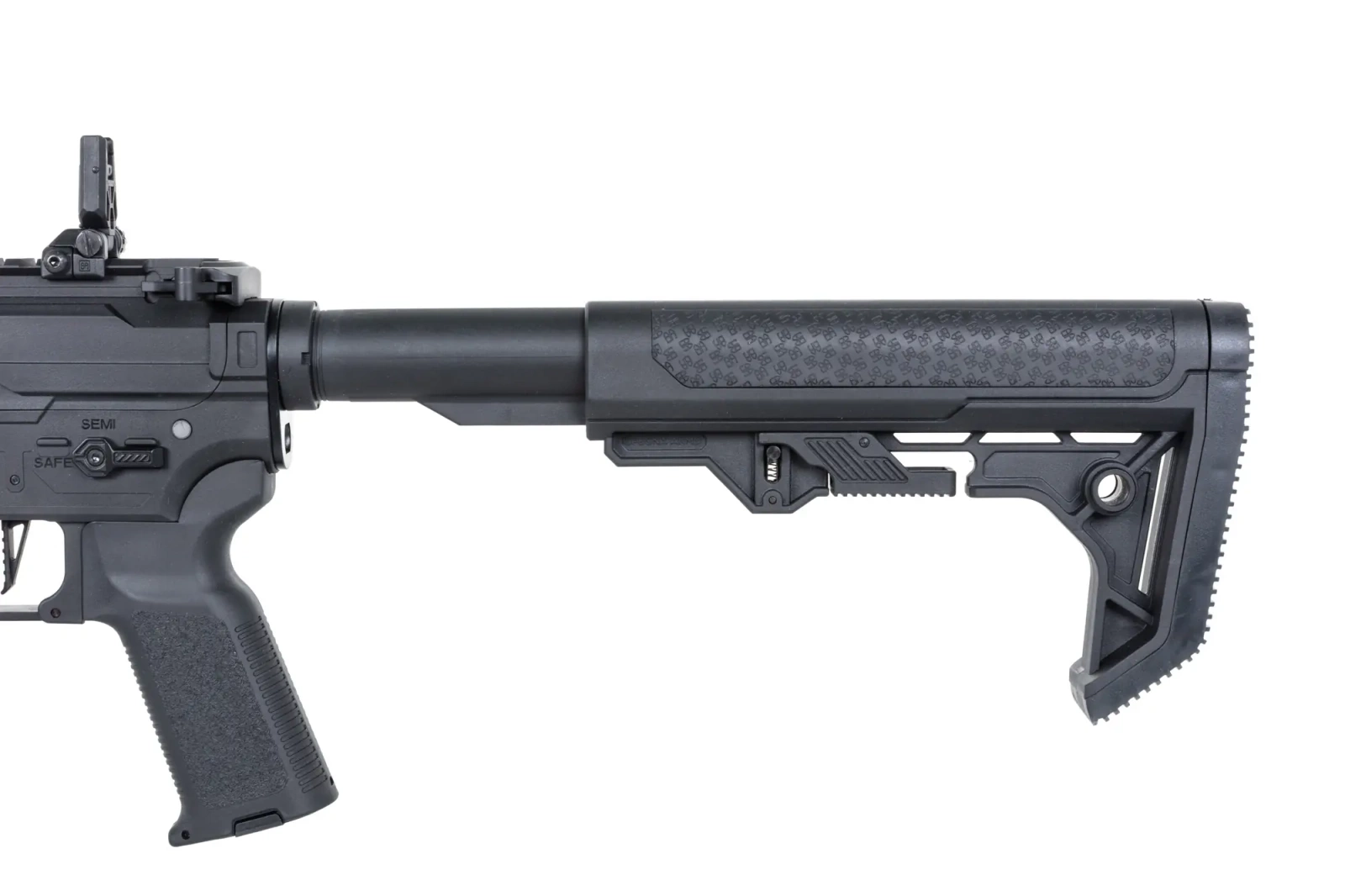 Korpus to autorski projekt Specna Arms łączący w sobie walory estetyczne oraz wysoką ergonomię. Każdy element został wykonany oraz spasowany z dbałością o szczegóły. Model posiada obustronne powiększone manipulatory (selektor oraz zwalniacz magazynka) oraz funkcjonalny bolt-catch.