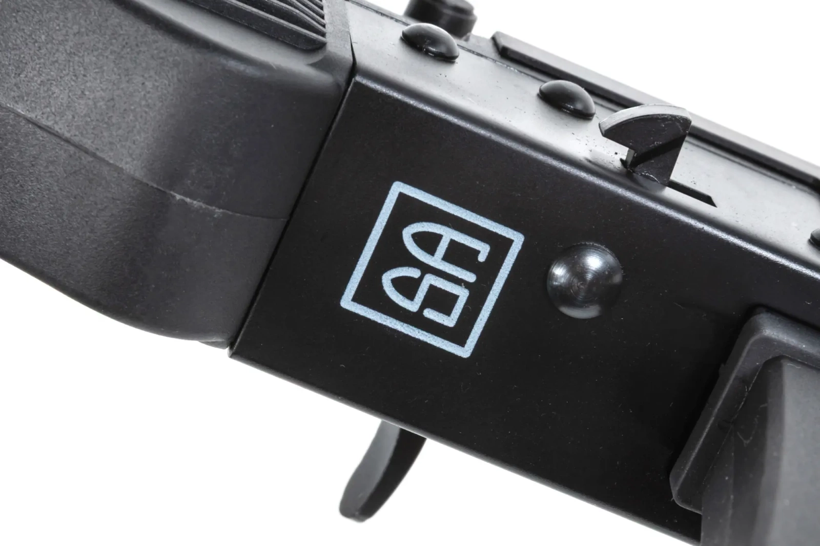 Z wytrzymałego tworzywa wykonano: chwyt pistoletowy, magazynek, łoże oraz osłonę rury gazowej.