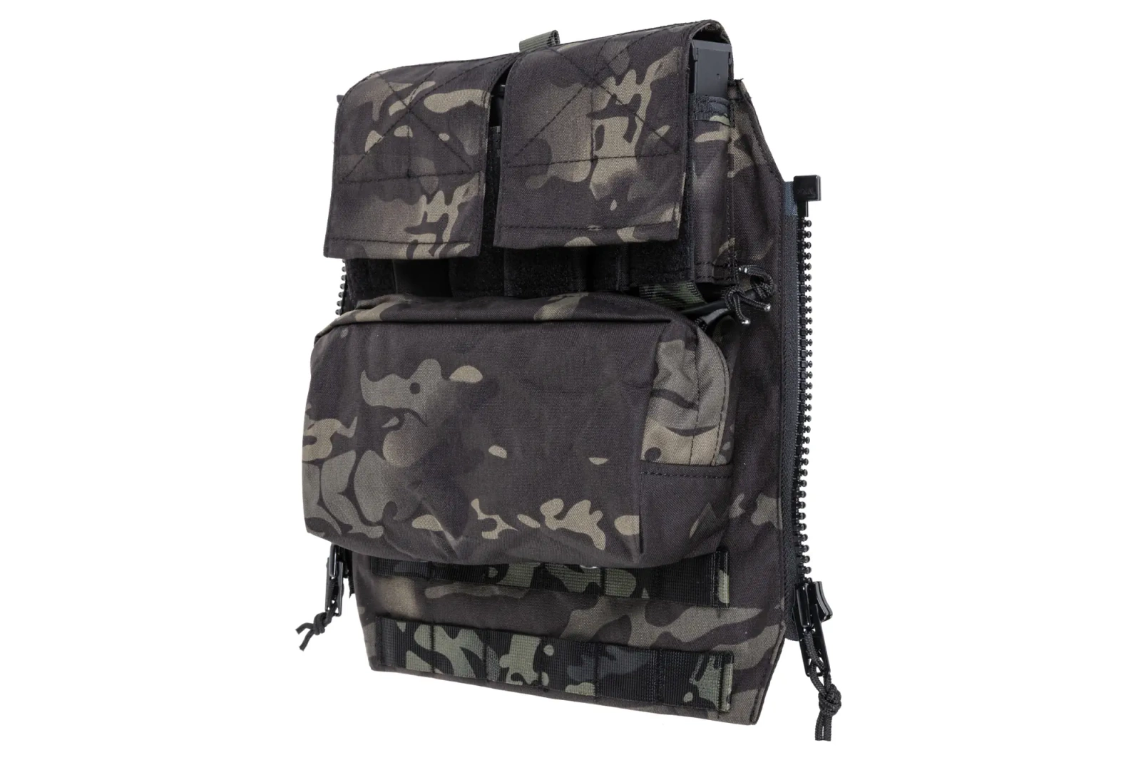 Panel Buccanner MK I został wyposażony w główną komorę zamykaną na dwubiegunowe zamki błyskawiczne. Komora pomieści niezbędne wyposażenie oraz drobne przedmioty takie jak powerbank, portfel, dodatkowe opatrunki lub butelkę z wodą. Dno komory zostało wyposażone w otwory drenażowe. Poniżej komory znajdują się dwa rzędy mocowań kompatybilnych z systemem Molle, co umożliwi rozbudowę całości o dodatkowe akcesoria. Na samy końcu warto wspomnieć o dwóch ładownicach (każda posiada 3 komory) na np. magazynki pistoletowe, narzędzia, multitool, latarkę itp. Ładownice są zamykane przy pomocy ;
