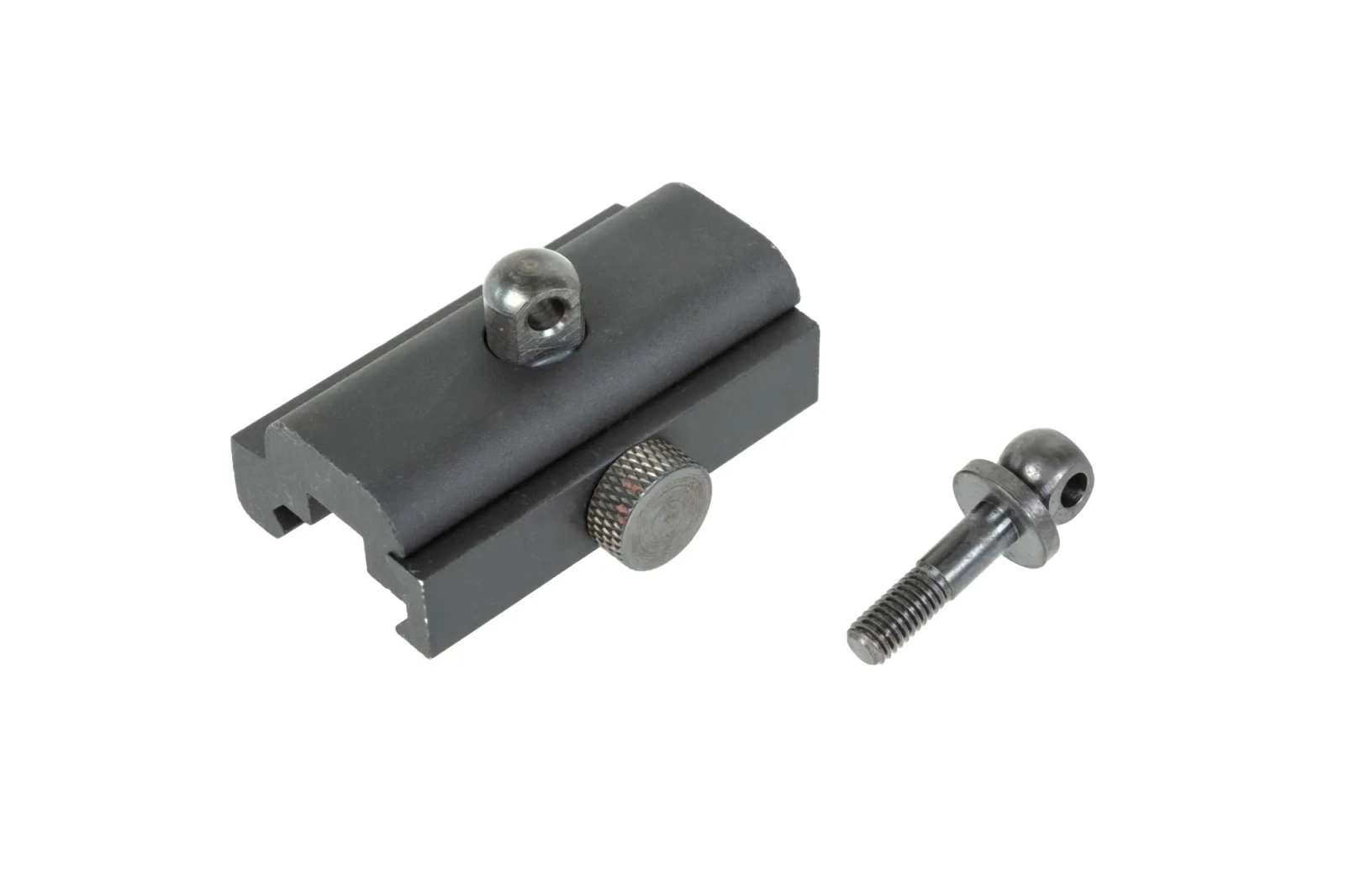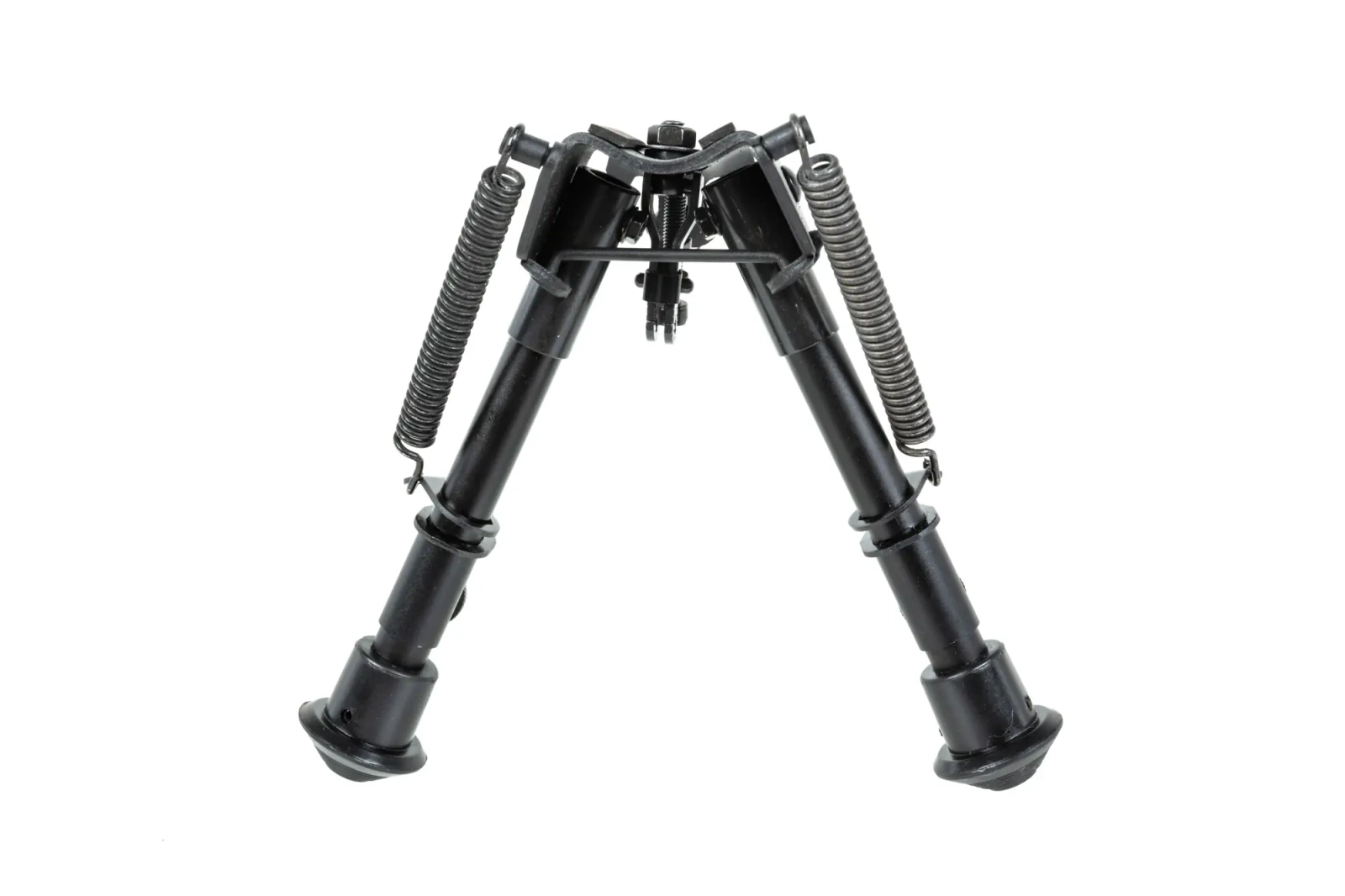 Składany dwójnóg od producenta Snow Wolf. Długość minimalna nóżek wynosi 15 cm, maksymalna 23 cm. Nóżki zakończone są gumowymi stopkami, które ułatwią obsługę karabinu na nierównym terenie. Montaż na bączek lub przy pomocy adaptera, który pozwoli zamontować całość na szynę RIS.