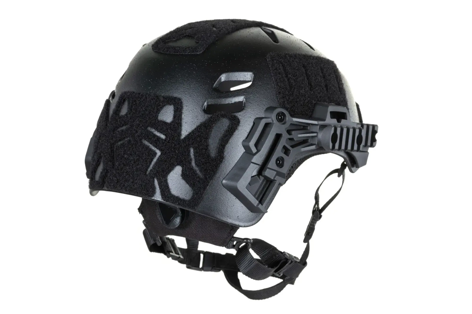 Po bokach znajdują się szyny montażowe, które pozwolą na zamontowanie dodatkowego wyposażenia ;słuchawki. Front repliki ma mocowanie na urządzenia NVG. W zestawie znajdziemy również linki odciągowe. Na sporej powierzchni skorupy hełmu znajdują się rzepy, które pozwolą na mocowanie naszywek typu morale-patch, oznaczeń, znaczników typu e-lite, etc.