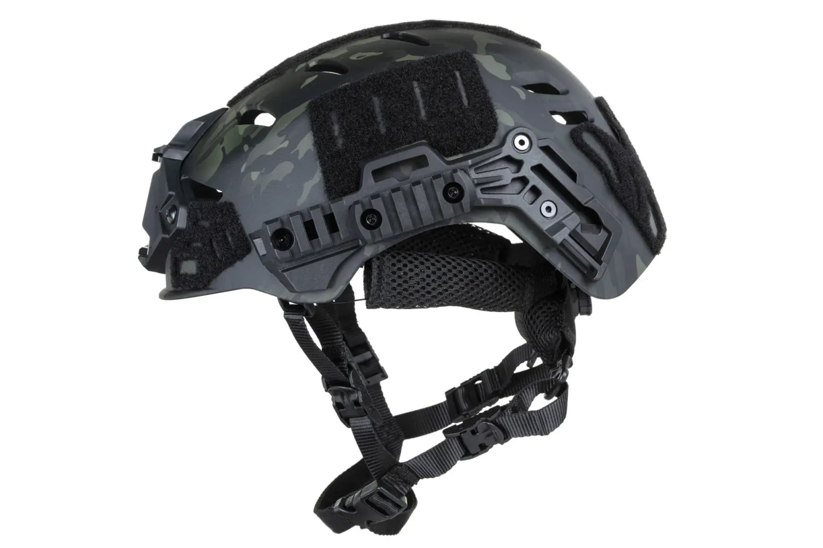 Po bokach znajdują się szyny montażowe, które pozwolą na zamontowanie dodatkowego wyposażenia ;słuchawki. Front repliki ma mocowanie na urządzenia NVG. W zestawie znajdziemy również linki odciągowe. Na sporej powierzchni skorupy hełmu znajdują się rzepy, które pozwolą na mocowanie naszywek typu morale-patch, oznaczeń, znaczników typu e-lite, etc.