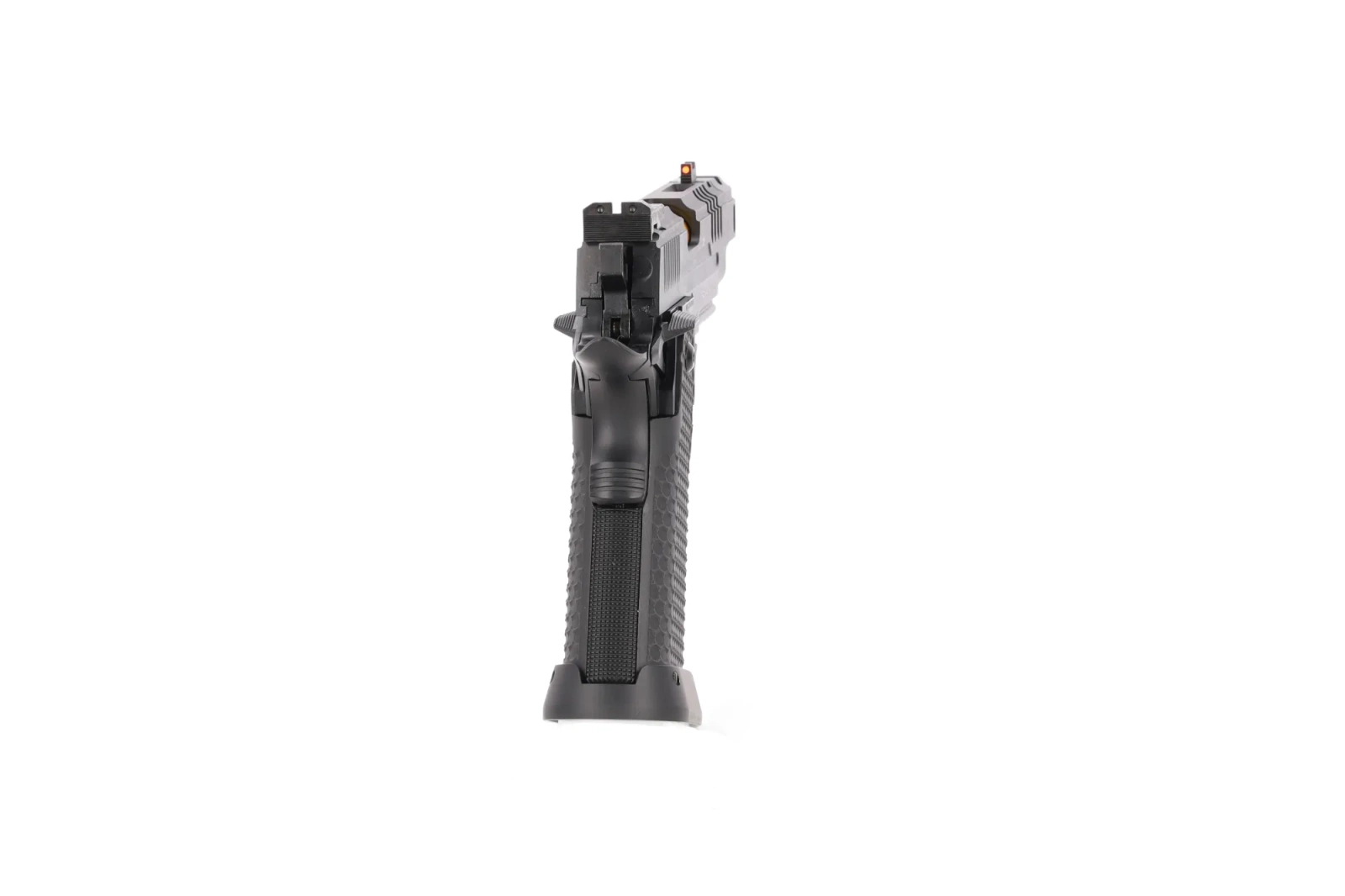 Model wyposażony został w światłowodową muszkę oraz szczerbinkę, która posiada prostą regulację góra-dół, prawo-lewo. Na końcu lufy znajduje się kompensator, a w celu uzyskania przewagi nad przeciwnikiem, pod lufą znajduje się szyna pozwalająca zamocować laser lub latarkę a na zamku znajdują się nacięcia, które ułatwią przeładowanie. Zostając przy zamku, należy zwrócić uwagę na wycięcia na nim - umożliwia to podgląd na złotą lufę zewnętrzną. Całość przykuwa uwagę ze względu na niecodzienny i elegancki design -powodując, że replika jest wyjątkowa i posiada niepowtarzalny wygląd, jednocześnie sam zamek został lekko ;
