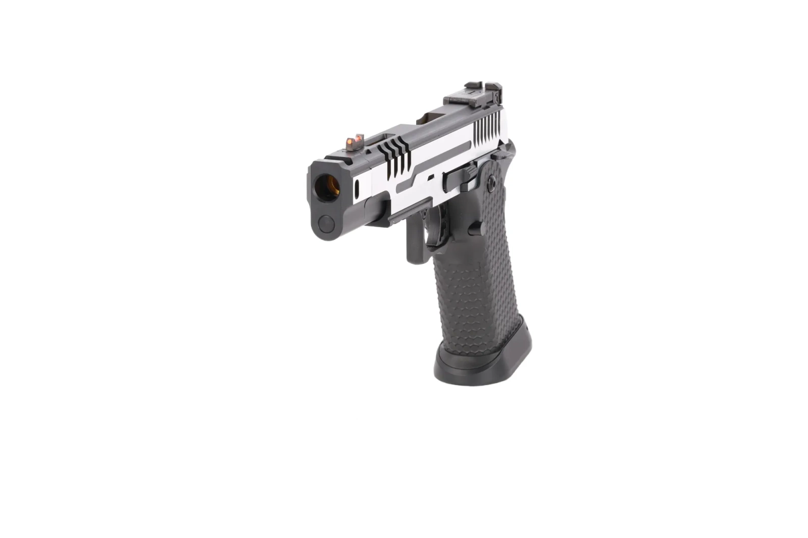 Model posiada światłowodową muszkę oraz szczerbinkę posiadającą prostą, ale skuteczną regulację góra-dół, lewo-prawo. W celu uzyskania przewagi nad przeciwnikiem, pod lufą znajduje się szyna pozwalająca zamocować laser lub latarkę, a lufa zewnętrzna zakończona jest kompensatorem. Na zamku znajdują się żebrowania, które ułatwią przeładowanie. Zostając przy zamku, warto zwrócić uwagę na wycięcia, które ukazują złotą lufę zewnętrzną. W połączeniu ze srebrno-czarnym kolorem modelu, daje to bardzo ciekawy, estetyczny i rzadko spotykany wygląd, jednocześnie pozwala odchudzić nieco zamek.