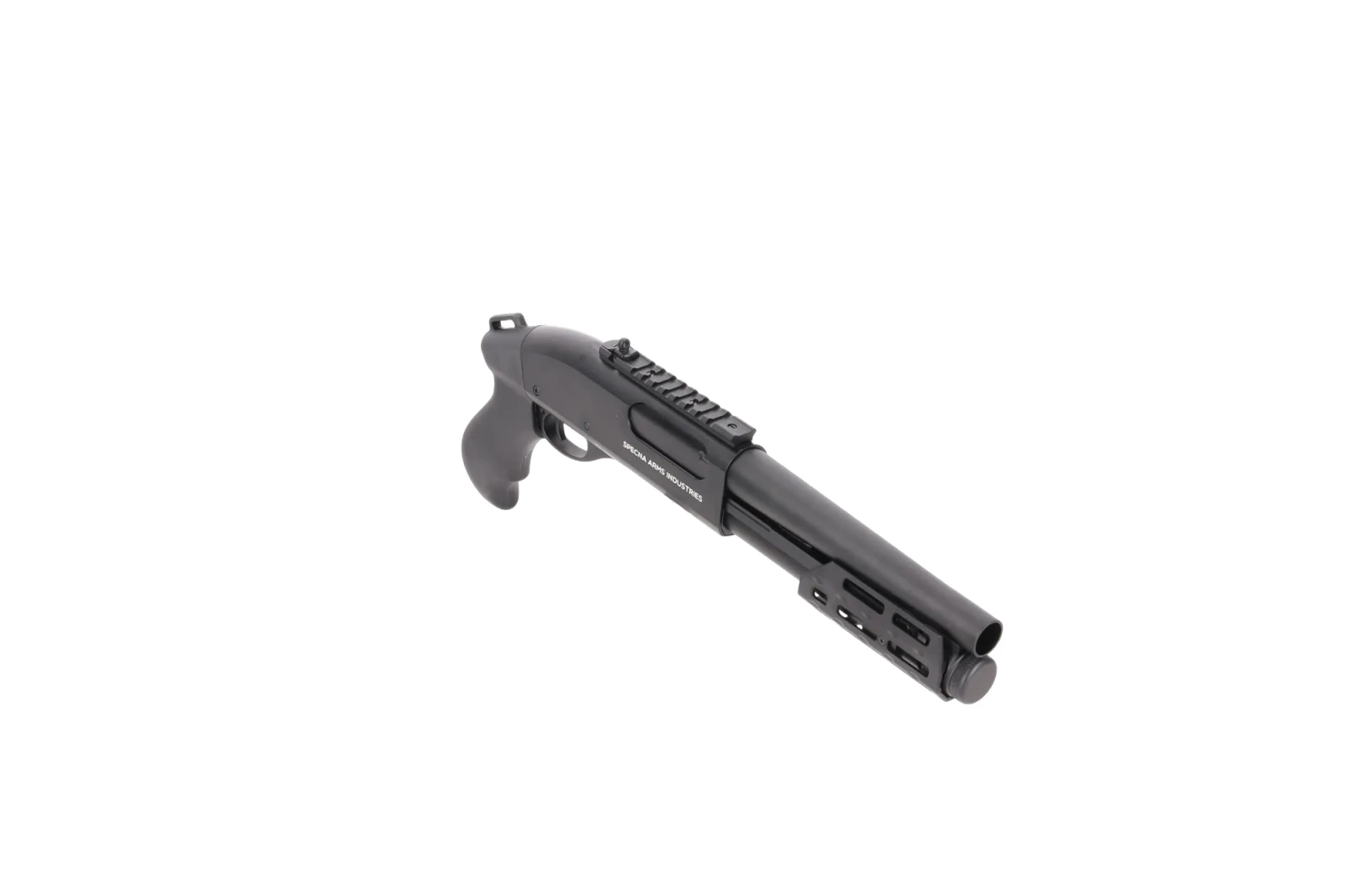 Strzelba ASG Specna Arms SA-VGS15 Vapor™ to airsoftowa replika zasilana green gasem, która posiada zintegrowany zbiornik gazu oraz wzmocnioną dyszę. Kompaktowy model ma jedno, ale ważne zadanie - dostarczyć użytkownikowi niesamowitych, ciekawych wrażeń, podczas dynamicznych rozgrywek airsoftowych. Krótka strzelba pozbawiona kolby będzie idealną opcją dla użytkowników, którzy uwielbiają dynamiczne, zacięte walki w zamkniętych pokojach, na klatkach schodowych - krótko mówiąc tych, co uwielbiają CQB. Metalowa konstrukcja, mocowania M-LOK, grzbietowa szyna RIS na optykę, bardzo wysoka jakość wykonania oraz kultura pracy dadzą użytkownikowi dużo satysfakcji i zwykłej radości podczas każdej potyczki.
