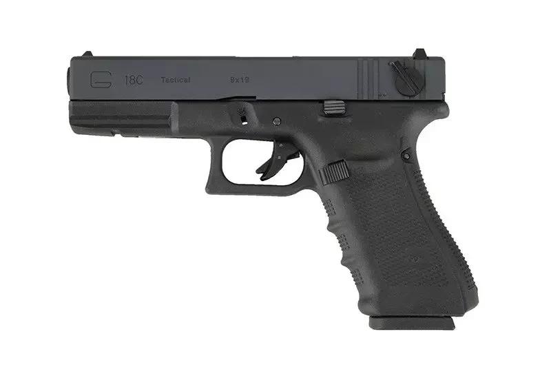 Replika pistoletu G18C jest jedną z wersji najbardziej chyba znanego na świecie austriackiego pistoletu. Dzięki wygodnemu, posiadającemu antypoślizgową fakturę chwytowi replika idealnie leży w dłoni, zaś specjalnie profilowana osłona spustu gwarantuje pewny chwyt podczas operowania pistoletem. Tak jak w wersji palnej, przyrządy celownicze są dobrze widoczne i oznaczone w sposób umożliwiający prowadzenie ognia w słabych warunkach oświetleniowych. W przeciwieństwie do większości dostępnych na rynku modeli, ten zaopatrzony jest w umieszczony w języku spustowym bezpiecznik.