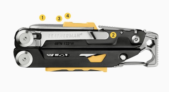 Funkcja pełnej blokady oznacza, że każde narzędzie oraz nóż na rękojeści, za wyjątkiem głowicy kombinerek, zostanie zablokowane we właściwej pozycji. Konstrukcja z pełną blokadą umożliwia użytkownikowi obsługę poszczególnych narzędzi w sposób bezpieczny i efektywny. Blokując je we właściwej pozycji, gdy jest całkowicie rozłożone, użytkownik może wywierać nacisk na przyrząd, jednocześnie bezpiecznie wykonując pracę, zanim ręcznie odblokuje narzędzie, by je złożyć.