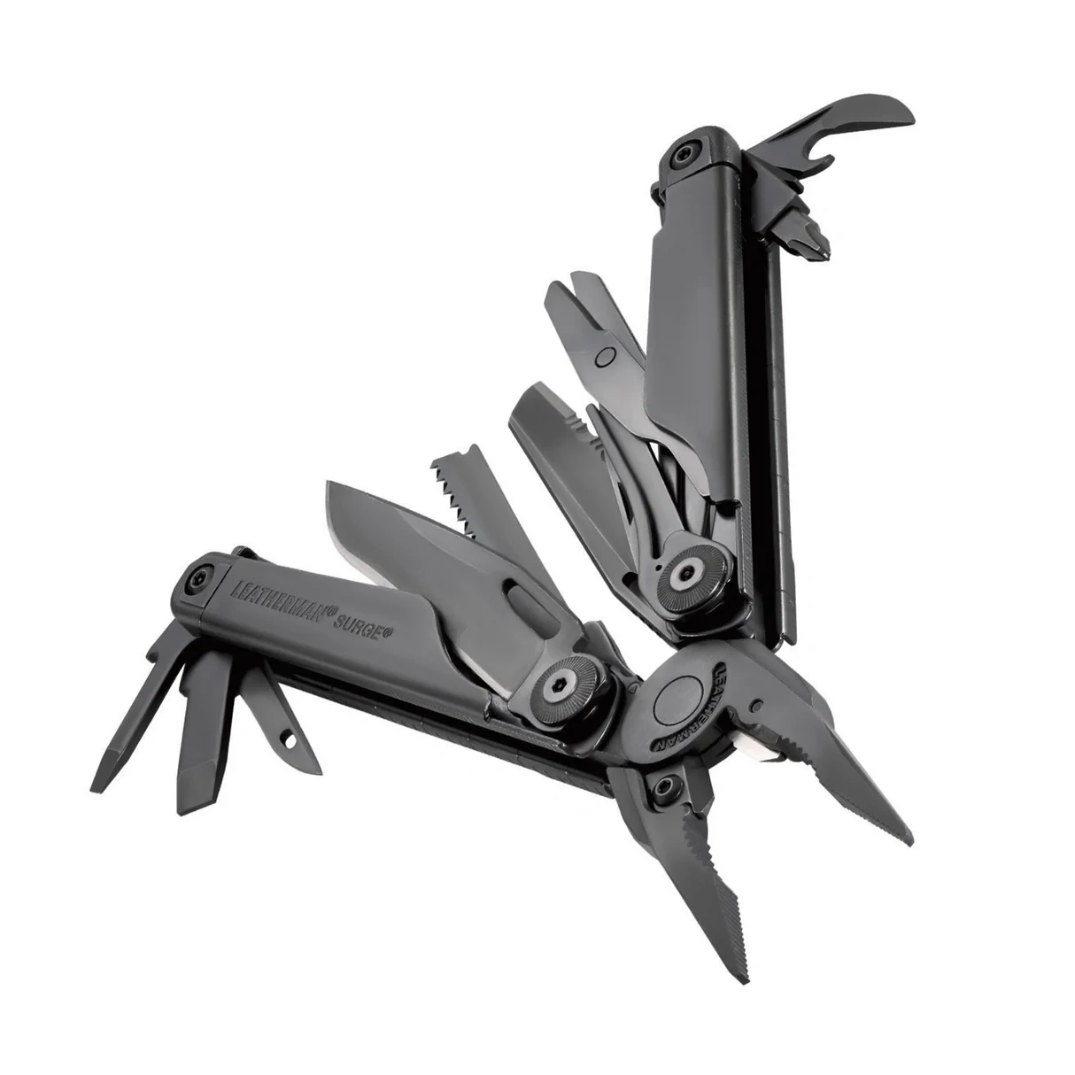 Leatherman Surge oraz Super Tool 300 to nasze dwa największe multitoole. Posiada 19 bardzo wydajnych zastosowań, większą integrację kombinerek, dłuższe ostrza do wielu narzędzi i łatwe w użyciu funkcje blokowania. Wyjątkowy zmieniacz ostrzy, wysokiej jakości wymienne przecinaki do drutu i cztery otwierane na zewnątrz ostrza zapewniają szybki dostęp do najczęściej używanych narzędzi. Surge został zaprojektowany do najbardziej wymagających zadań i użyteczności dla tych, którzy go używają. W zestawie z nylonowym pokrowcem. Kompatybilny zaczep kieszonkowy sprzedawany jest osobno.