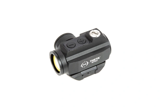 Celownik kolimatorowy Theta Optics™ Compact zamknięty w wytrzymałej metalowej obudowie i zasilany baterią CR2032, umożliwia użycie czerwonej plamki celowniczej do prowadzenia działań zarówno dziennych, jak i nocnych. Punkt celowniczy możemy płynnie wyregulować w pionie i poziomie, posiada on także kilka stopni natężenia. Kolimator posiada dwa przyciski do szybkiej regulacji jasności plamki oraz umożliwiają włączenie i wyłączenie urządzenia. Montowany na standardowej szynie RIS 22mm, kolimator pozwala na błyskawiczne i precyzyjne celowanie.