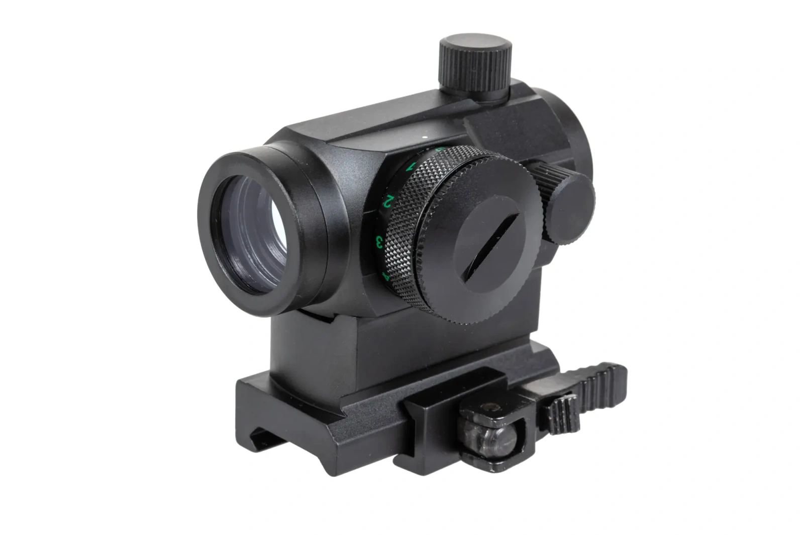 Celownik kolimatorowy Specna Arms CORE™ Compact zamknięty w wytrzymałej metalowej obudowie i zasilany baterią CR2032/CR1620, umożliwia użycie zielonej lub czerwonej plamki celowniczej do prowadzenia działań zarówno dziennych, jak i nocnych. Punkt celowniczy możemy płynnie wyregulować w pionie i poziomie, posiada on także kilka stopni natężenia. Montowany na standardowej szynie RIS 22mm, kolimator pozwala na błyskawiczne i precyzyjne celowanie.
