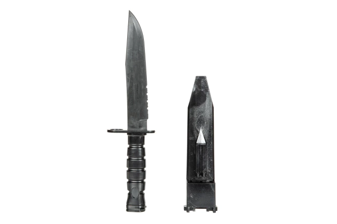 Głownia noża została wykonana z wytrzymałego, ale giętkiego tworzywa sztucznego. Rękojeść posiada żebrowaną fakturę, co zapewnia pewny chwyt. Podstawa rękojeści posiada montaż do replik typu M4/M16. Atrapa idealna do treningów, symulacji, etc.