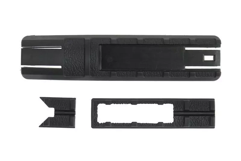 Wykonana z wytrzymałego i plastycznego tworzywa sztucznego, profilowana okładzina na szyny standardu w kolorze czarnym. Wyposażona w podłużną kieszonkę z przykryciem oraz kanał na kabel. Długość okładziny: 160 mm.