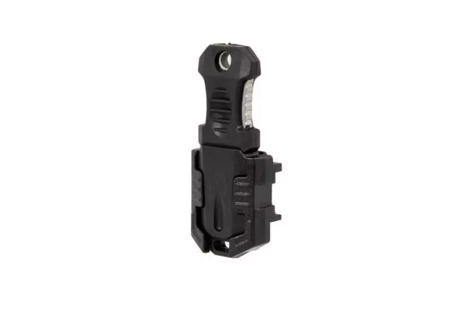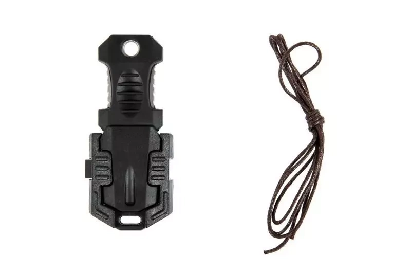 Niewielki kieszonkowy nożyk wykonany z jednolitego kawałka stali nierdzewnej 440C. Chwyt noża został powleczony gumowym tworzywem o antypoślizgowej fakturze zapewniającej pewność chwytu. Z identycznego materiału wykonano pochewkę. W zestawie znajduje się wykonany z wytrzymałego tworzywa sztucznego montaż na pals molle.