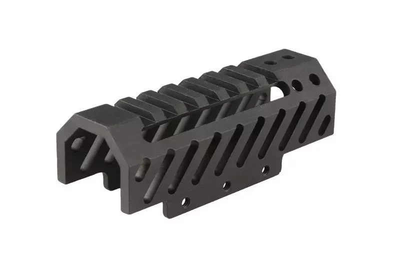 Szkieletowa budowa i lekki, wytrzymały materiał zapewnią nam odporność produktu. Osłona posiada szyny montażowe w standardzie RIS 22mm, co pozwala na montaż szerokiej gamy akcesoriów.