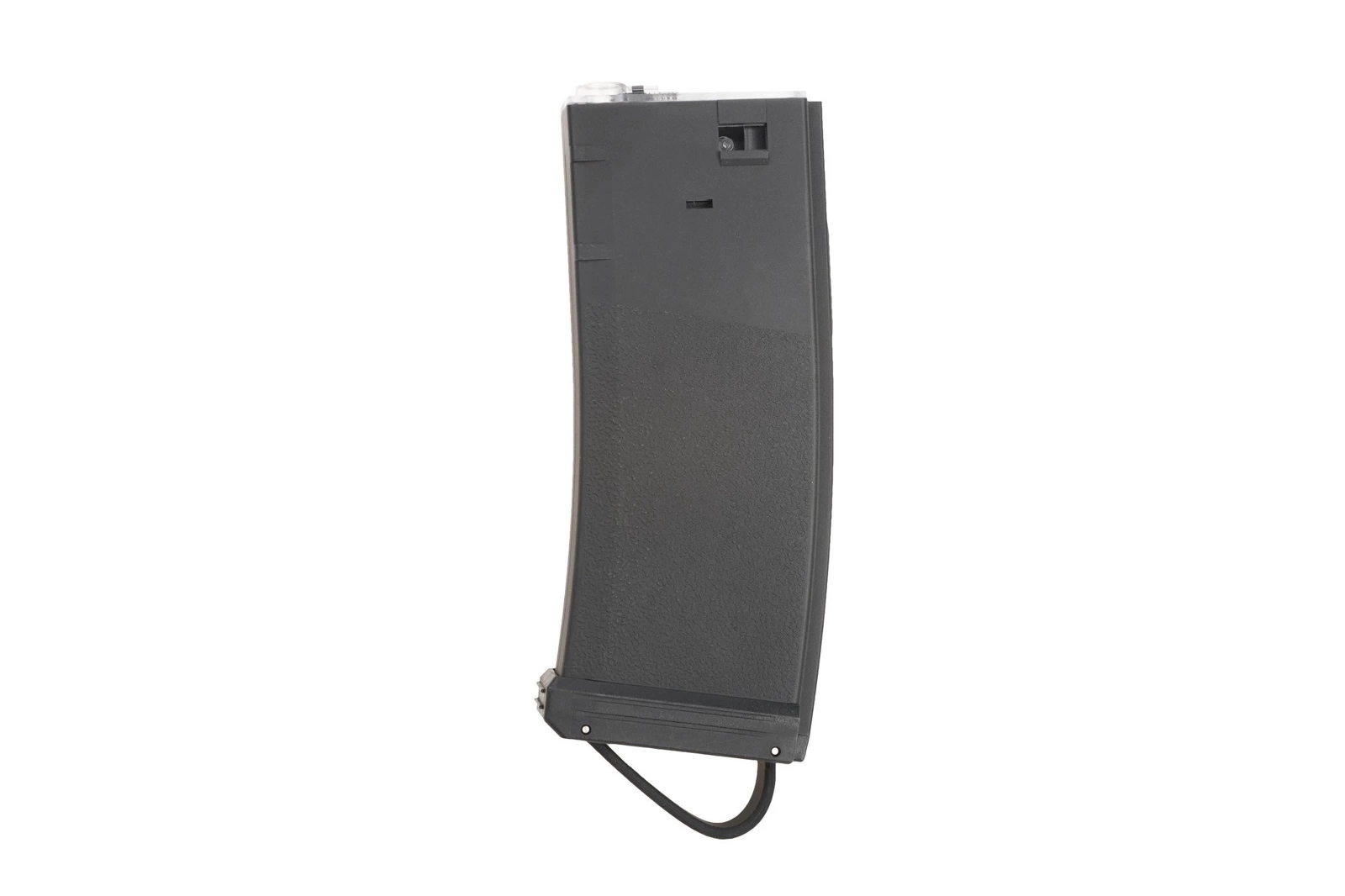 Magazynek z doświetleniem LED do użytku ze zwykłymi kulkami oraz kulkami typu tracer. Podświetlenie uruchamia się samodzielnie po wpięciu magazynka do repliki. Zakończony jest elastyczna gumą służącą jako magpul, ułatwia ona wydobycie magazynka z ładownicy.