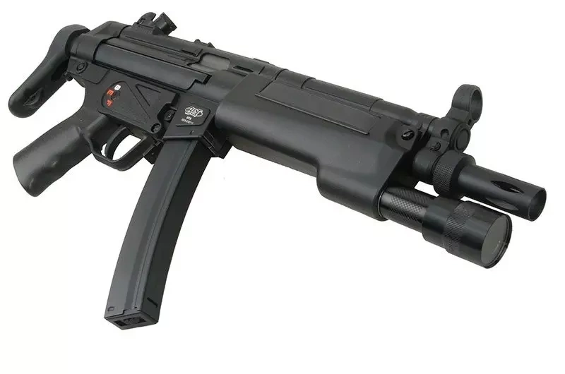 Replika wykonana jest z elementów metalowych oraz z tworzywa. Do produkcji chwytu przedniego, korpusu, chwytu pistoletowego, oraz kolby użyto wytrzymałego tworzywa sztucznego Natomiast do produkcji lufy zewnętrznej, tłumika ognia,obudowy latarki, oraz prowadnicy kolby użyto metalowego stopu.
