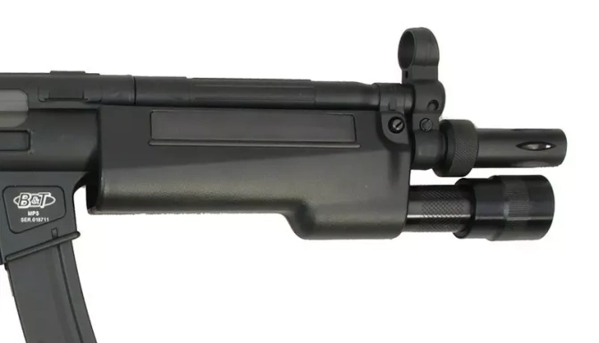 Replika posiada sprawną latarkę z przyciskiem żelowym umieszczonym w chwycie przednim, można ją jednak odkręcić.