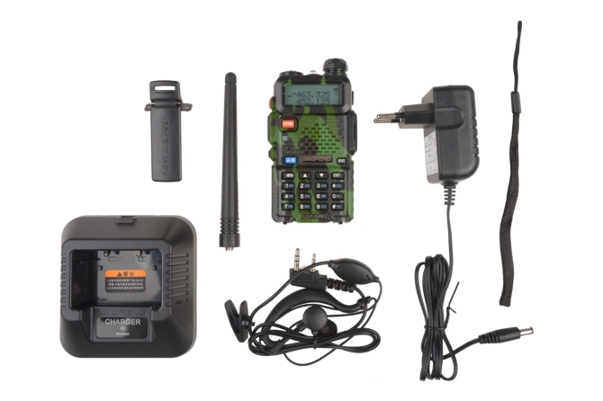 Ręczna, dwukanałowa radiostacja Baofeng UV-5R - krótka bateria (VHF / UHF) - camo
