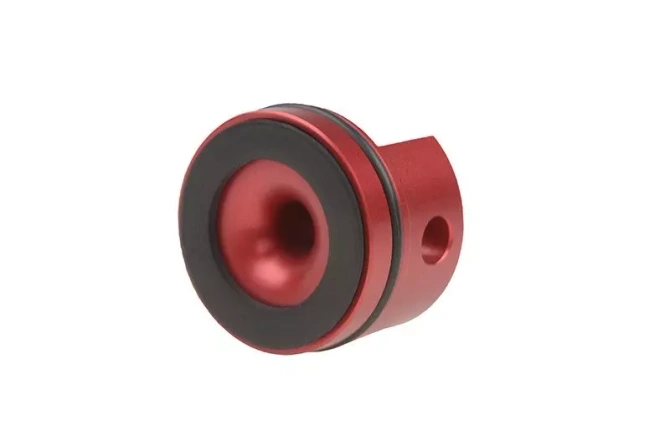 Ze względu na duże przeciążenia związane z energicznym ruchem dyszy podczas pracy gearboxa Prometheus zdecydował się na wykonanie głowicy amortyzującej (wyciszonej) głowicy cylindra z wyjątkowo mocnych i zaawansowanych materiałów. Do tego celu, jako najlepszy wybrano wzmonione aluminium, tzw. Duraluminium o znacznie lepszej odporności na zużycie mechaniczne w wypadku tarcia, charakterystykę tą dodatkowo poprawia anodyzacja która zwiększa twardość powierzchni i trwale zabezpiecza ją przed rdzą. Do wytworzenia tej głowicy cylindra wykorzystano precyzyjne maszyny CNC, a sam produkt został wycięty z jednolitej bryły materiału. Specjalistyczny kształt głowicy zapewnia brak strat na przepływie powietrza, a uszczelka O-Ring zapewni szczelność układu między głowicą a cylindrem.