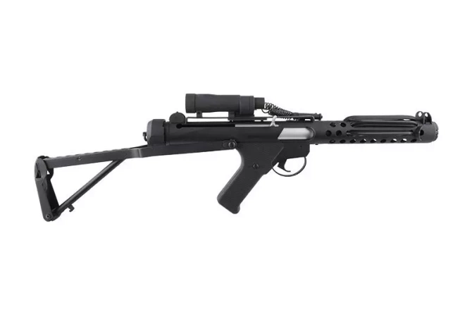 Replika została wyposażona w dedykowany, metalowy gearbox oparty na 9mm łożyskach, który zapewnia prędkość wylotową na poziomie ~360 FPS. Do repliki dołączono stalowy, skrócony magazynek typu low-cap o pojemności 50 kulek.
