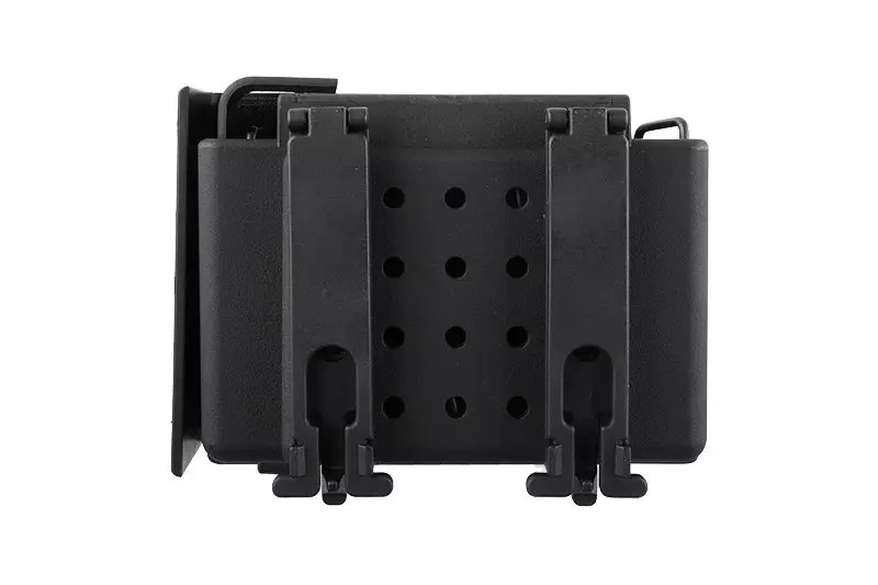 Ładownica mieści 4 magazynki pistoletowe, które są dosyłane do przodu przez podajnik, dzięki czemu nowy magazynek zawsze znajduje się w tym samym miejscu. Montaż systemu MOLLE pozwala na zastosowanie ładownicy na każdym wyposażeniu taktycznym w tym standardzie - istnieje również możliwość zamocowania na pasie.