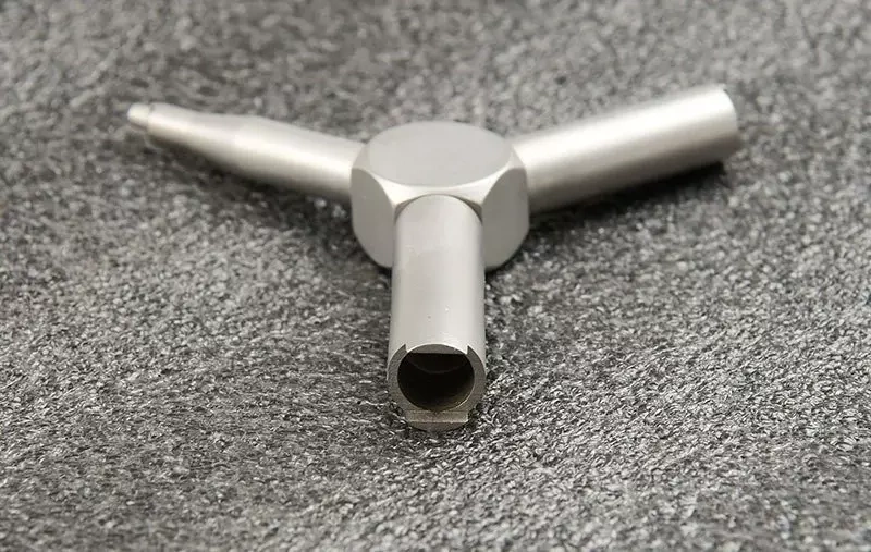 Klucz do zaworów magazynka został wykonany w całości z metalu. Dzięki zastosowaniu rozwiązania trzech kluczy połączonych w gwiazdę, nie trzeba kupować osobnych, pojedyńczych kluczy.