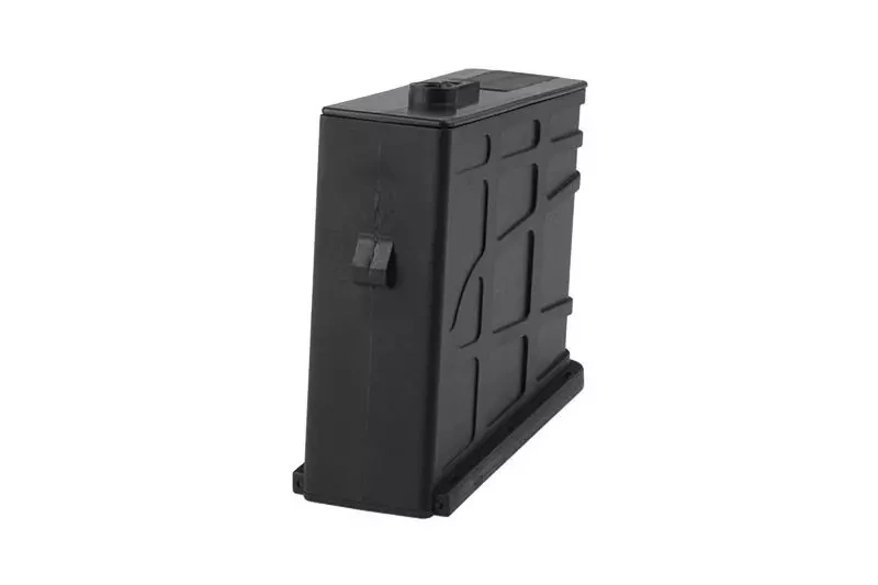 Wykonany z czarnego tworzywa sztucznego magazynek typu Hi-Cap do repliki SW-016 firmy Snow Wolf. Nakręcany za pomocą zębatki znajdującej się w dolnej części magazynka.