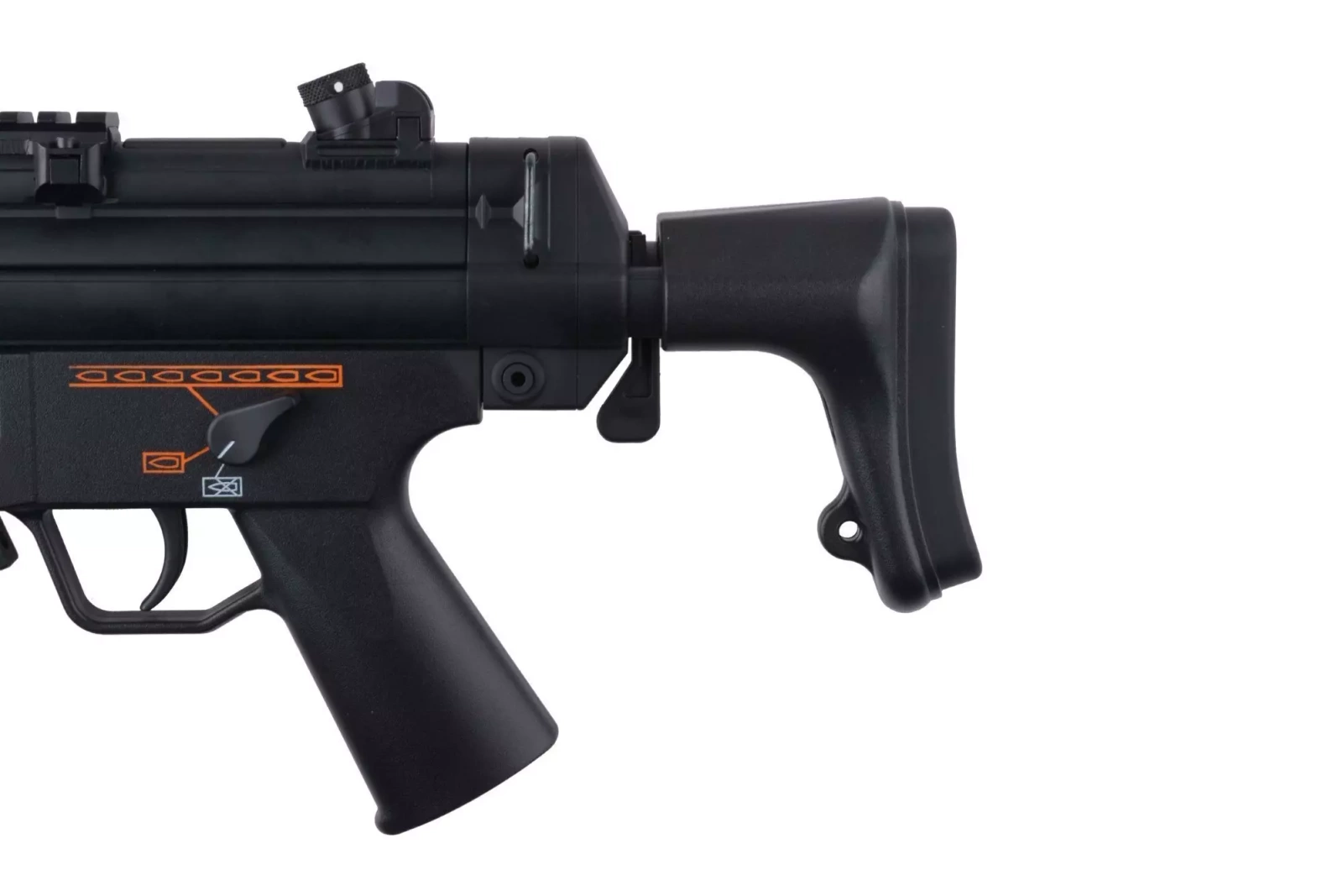 Regulacja systemu Hop-Up odbywa się poprzez dźwignie umieszczoną z lewej strony repliki, między chwytem przednim a korpusem.