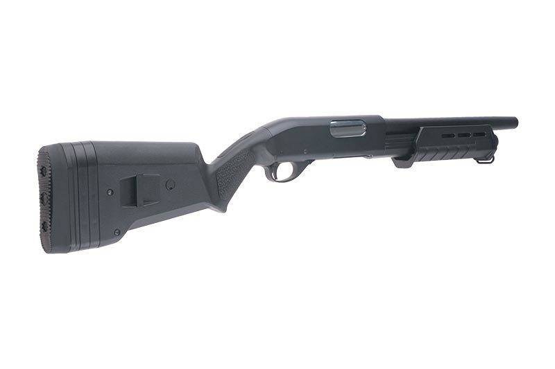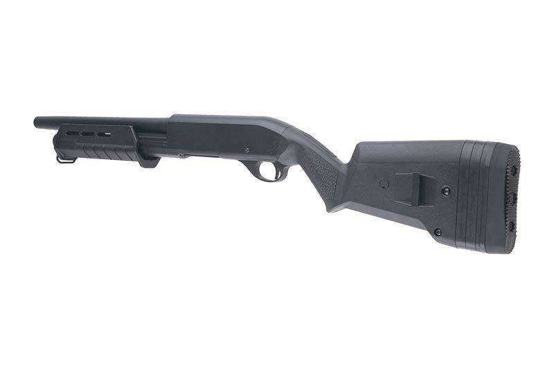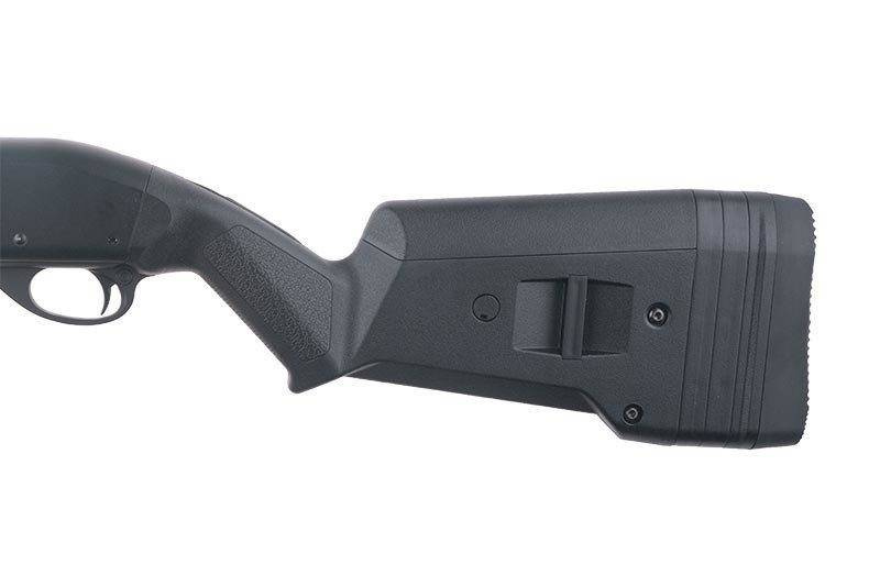 Przełącznik bezpiecznika oraz przycisk blokady klapki komory nabojowej znajdują się zaraz obok języka spustowego, przez co ich obsługa jest szybka i intuicyjna. Model posiada wygodną, stałą kolbę, zakończoną grubą stopką z gumy.