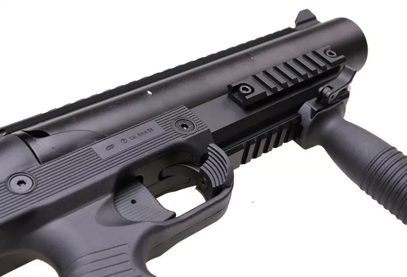 Replika granatnika wykonana została z wytrzymałego tworzywa oraz metalu. Elementy takie jak lufa, muszka oraz szyny RIS wykonano z metalu. Kolba, chwyt pistoletowy, korpus oraz szczerbinkę wyprodukowano z wytrzymałego tworzywa sztucznego. Dzięki zastosowaniu szyn RIS można swobodnie domontować dodatkowe elementy takie jak: Latarka, optyczne przyrządy celownicze czy chwyt taktyczny. Replika posiada składaną kolbę co zdecydowanie ułatwia transportowanie granatnika w plecaku lub małym pokrowcu. Komora nabojowa granatnika przystosowana została do 40mm granatów airsoftowych.